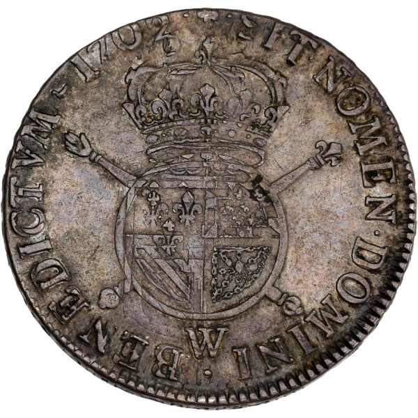 Louis XIV (1643-1715). Écu de Flandre aux insignes 1702, W, Lille.