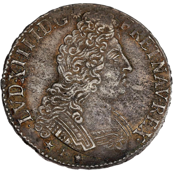 Av. LVD. XIIII. D. G (soleil) - FR. ET. NAV. REX. Buste à droite du Roi, cuirassé à l’antique.