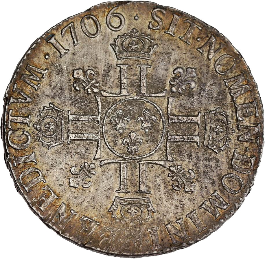 Louis XIV (1643-1715). Écu aux huit L, 2e type, flan neuf 1706, N, Montpellier.