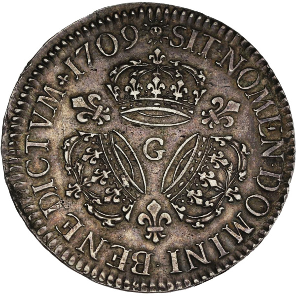 Louis XIV (1643-1715). Écu aux trois couronnes 1709, G, Poitiers.