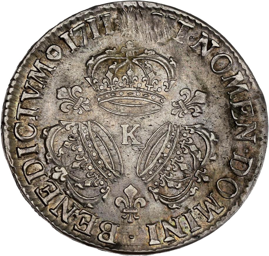 Louis XIV (1643-1715). Écu aux trois couronnes 1711, K, Bordeaux.