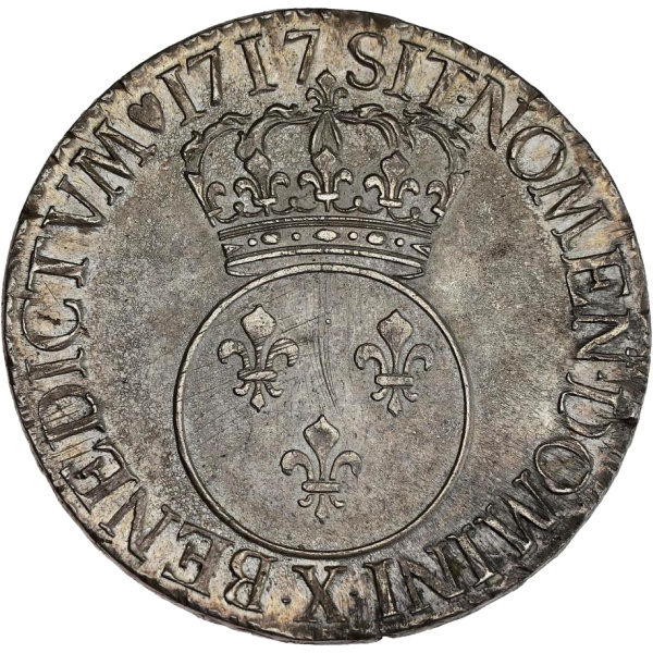 Louis XV (1715-1774). Écu dit Vertugadin, flan neuf 1717, X, Amiens.