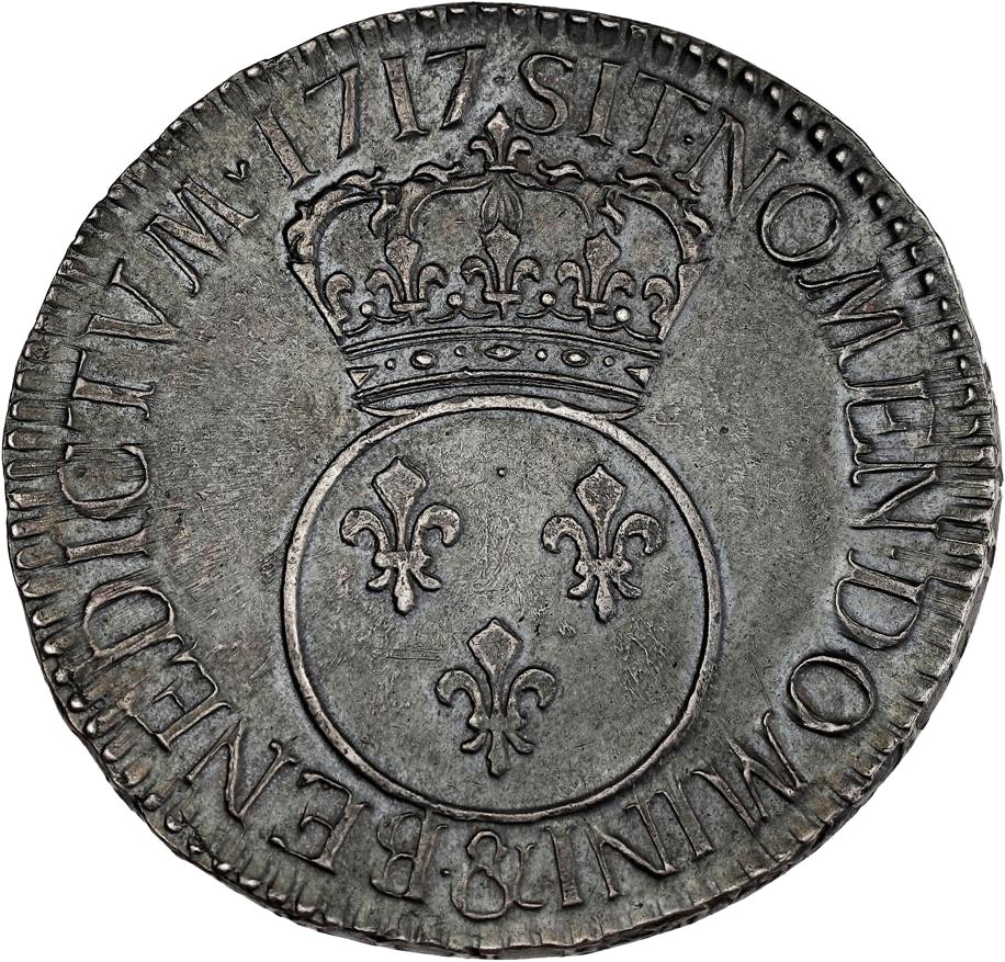 Louis XV (1715-1774). Écu dit Vertugadin, flan neuf 1717, &, Aix-en-Provence.