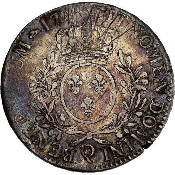 Rv. SIT. NOMEN. DOMINI. BENEDICTUM (différent) (date). Écu de France ovale, couronné, entre deux rameaux d’olivier, au-dessous (atelier).