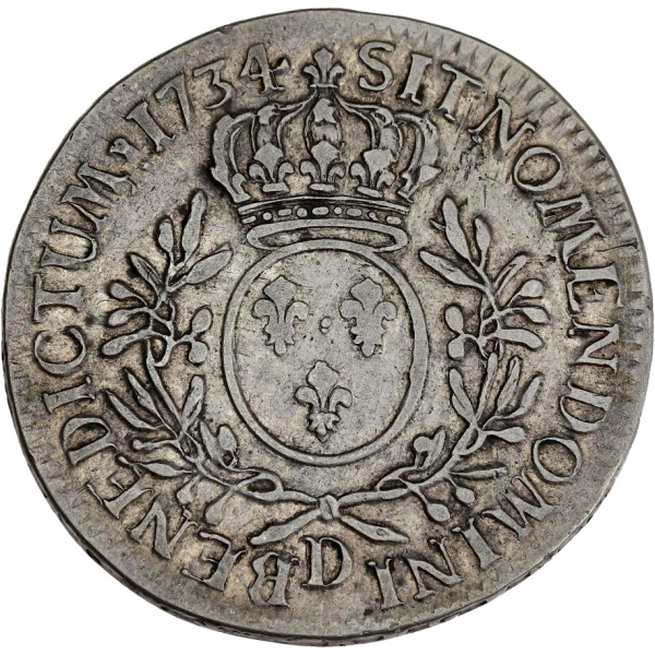 Louis XV (1715-1774). Écu aux rameaux d’olivier 1734, D, Lyon.