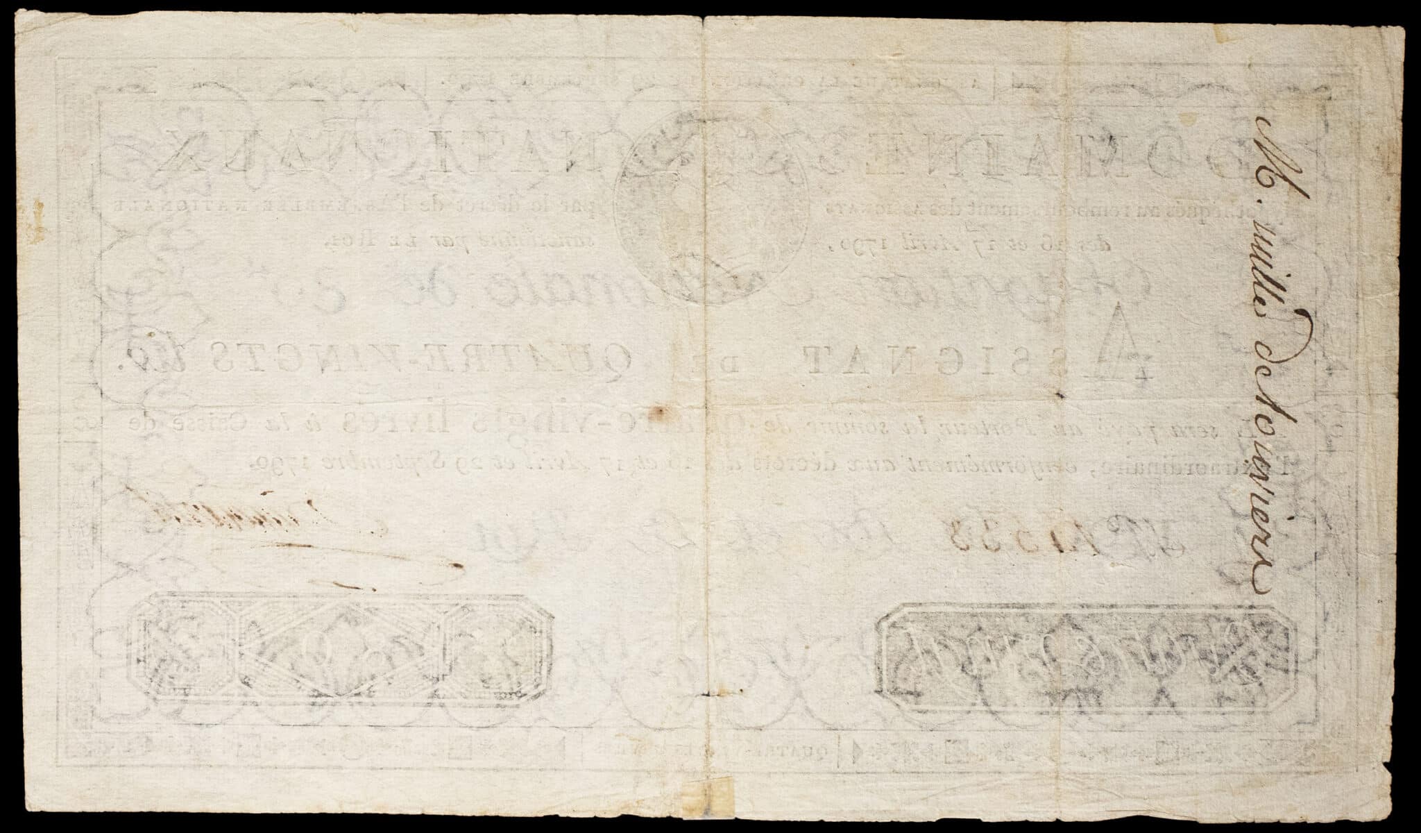 - Assignat de 80 livres - Domaines nationaux 29 septembre 1790.