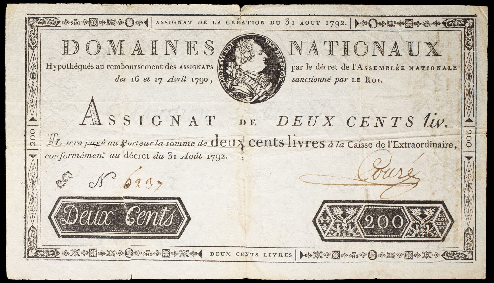 - Assignat de 200 livres - Domaines nationaux 31 août 1792.