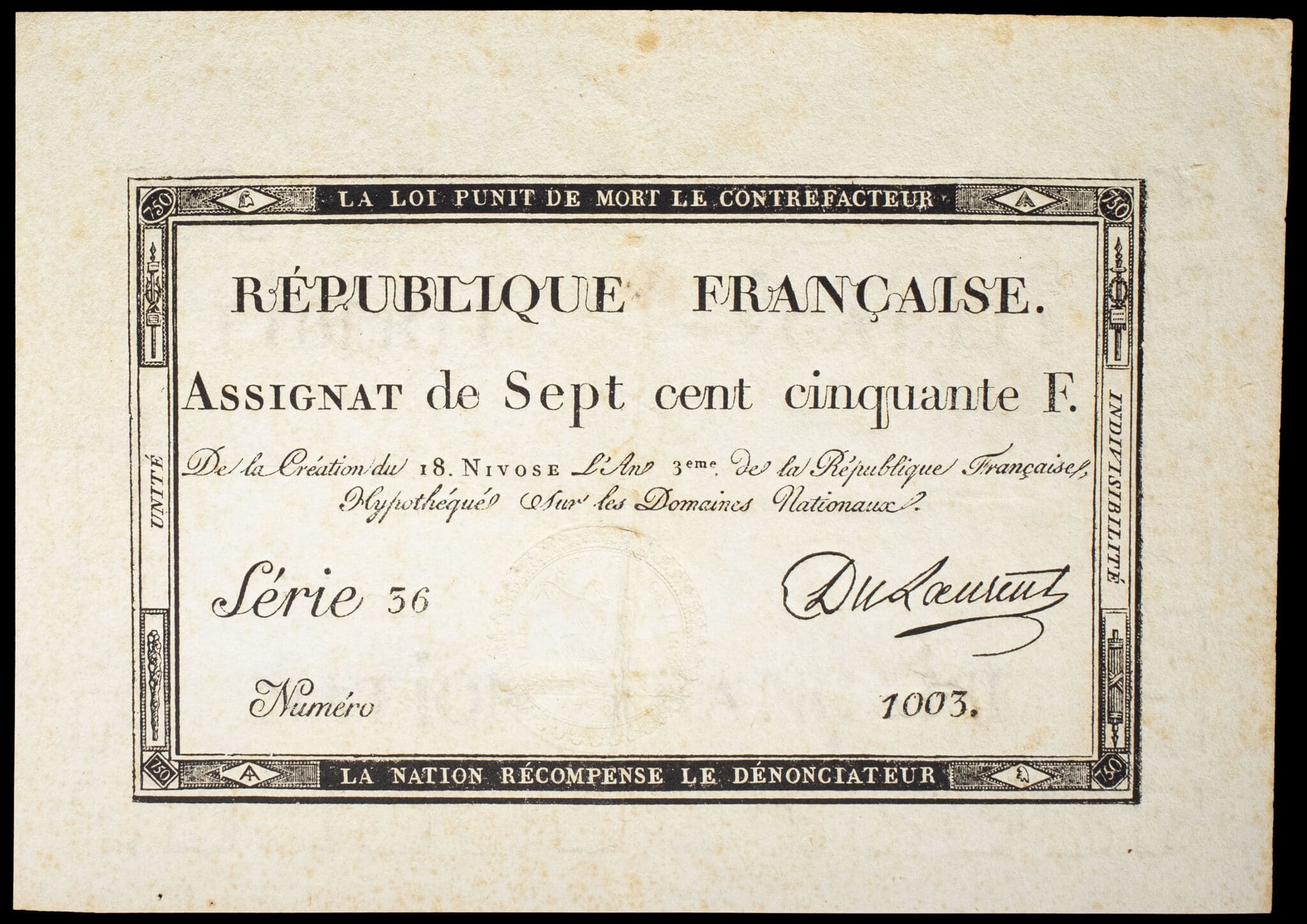 - Assignat de 750 francs - Domaines nationaux 18 Nivôse an 3.