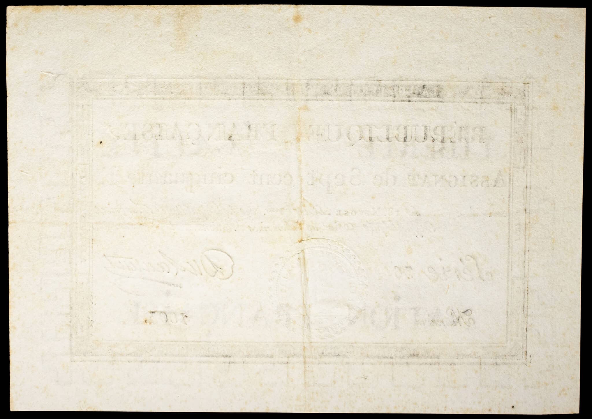 Série 36 - numéro 1003. Signature : Dulaurent. Cet exemplaire provient de la vente CGB “Papier-monnaie 22” d’avril 2012. Provenance : collection Alain Charollais.
