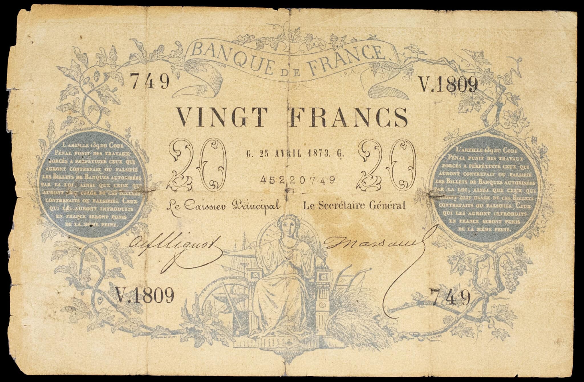- 20 francs type “bleu” 25 avril 1873.