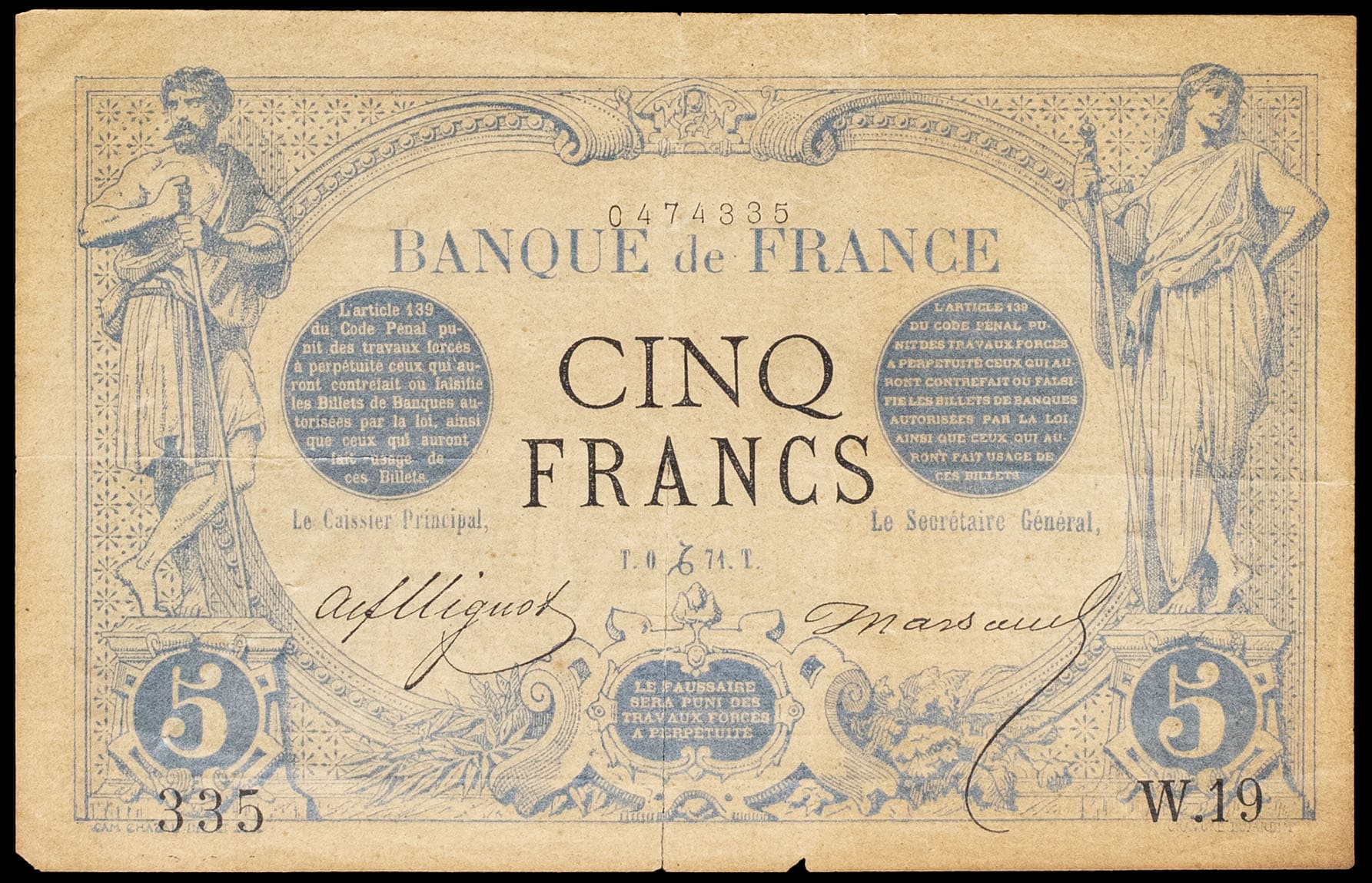 Rare exemplaire avec un épinglage (deux trous), une reconstruction centrale, une déchirure à 1h et 3h, ainsi qu’un manque en marge inférieure et dans l’angle inférieur droit. TB.