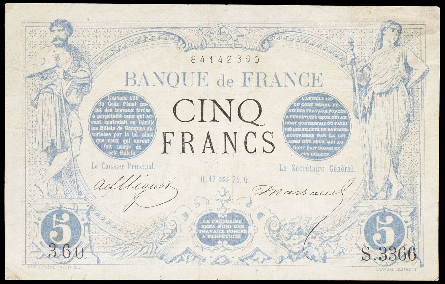 - 5 francs type “noir” 17 janvier 1874.