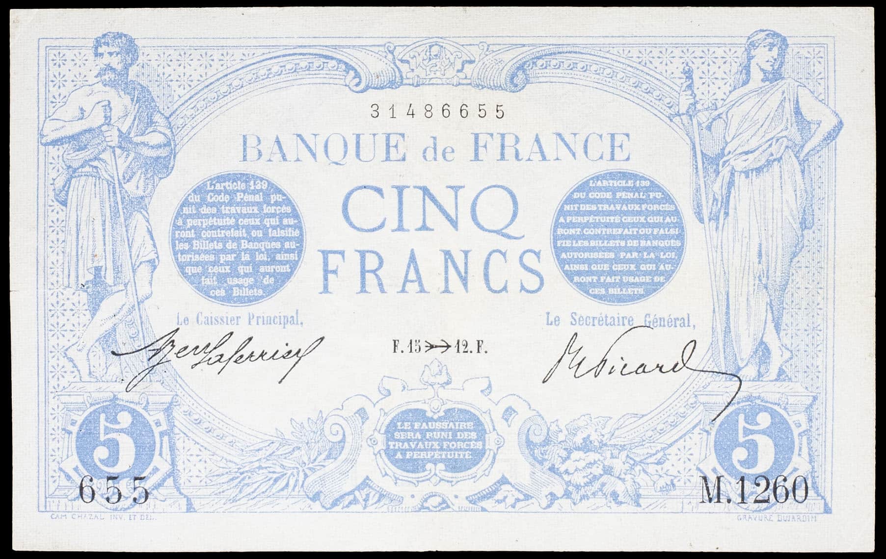 - 5 francs type “bleu” 15 novembre 1912.