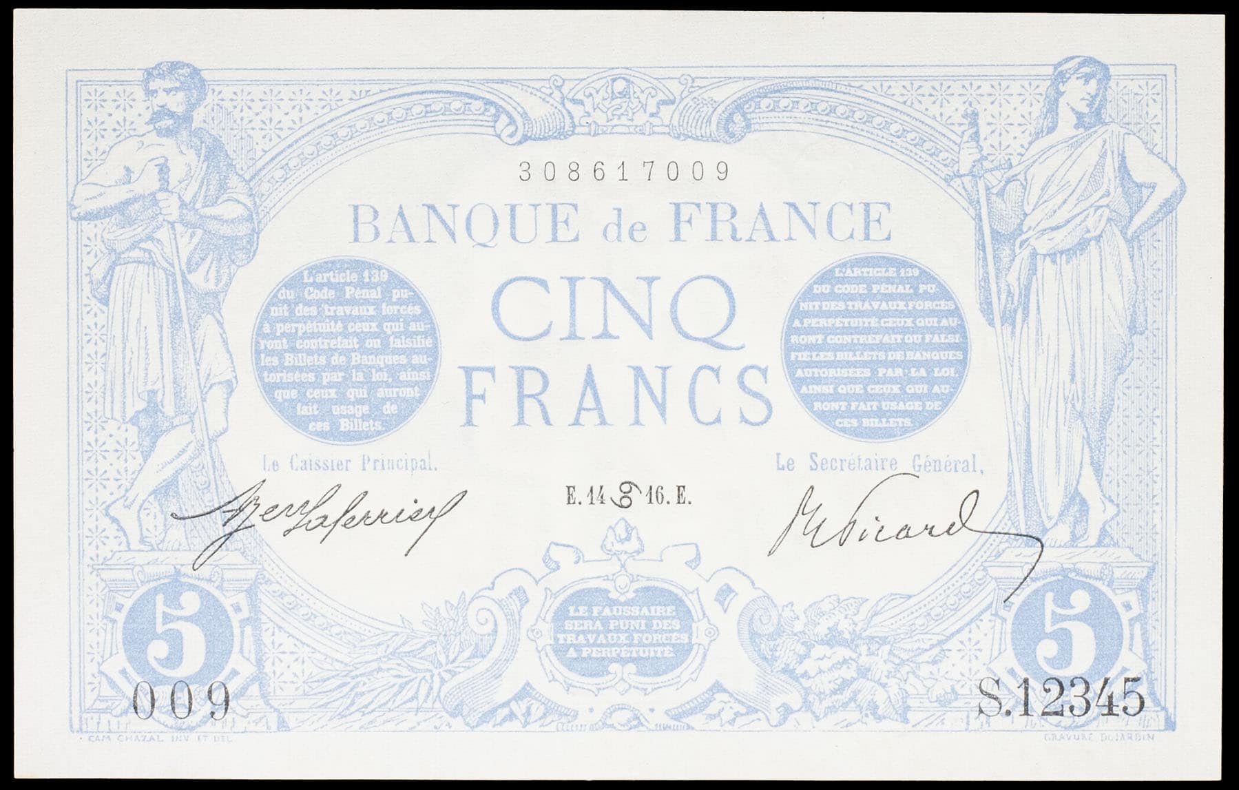 - 5 francs type “bleu” avec numéro spécial 14 juin 1916.