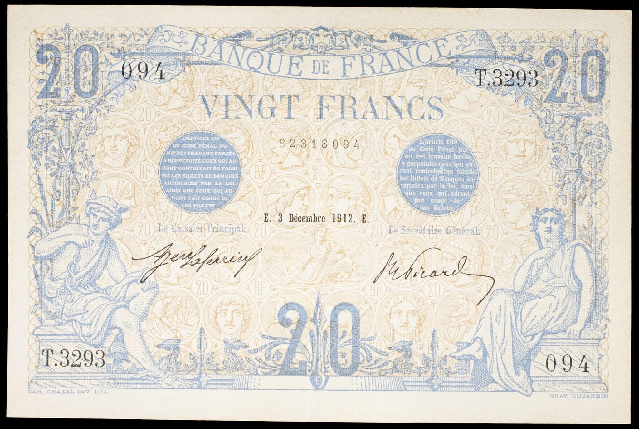- 20 francs type “bleu” 3 décembre 1912.