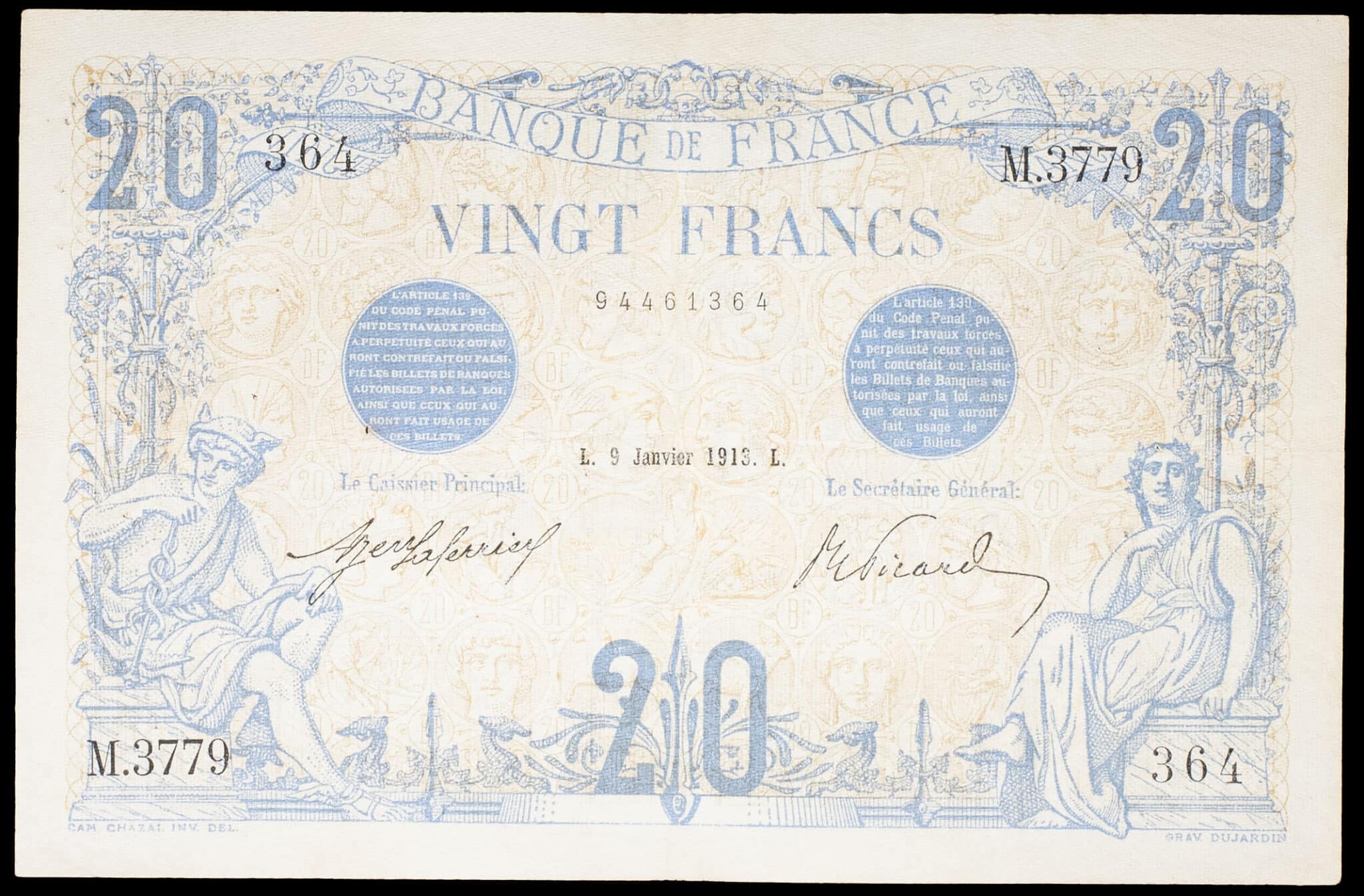 - 20 francs type “bleu” 9 janvier 1913.