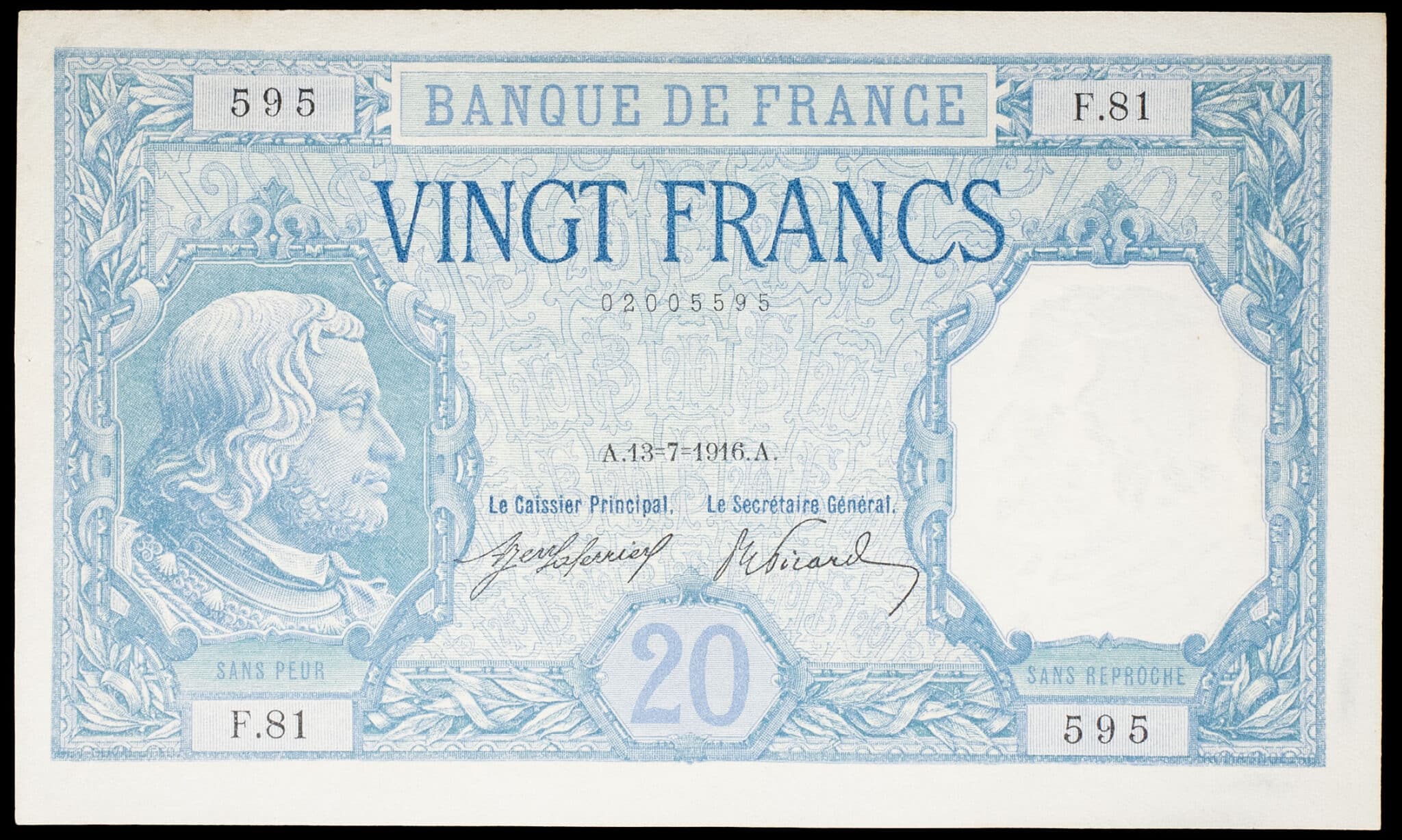 - 20 francs type “Bayard” 13-7-1916.