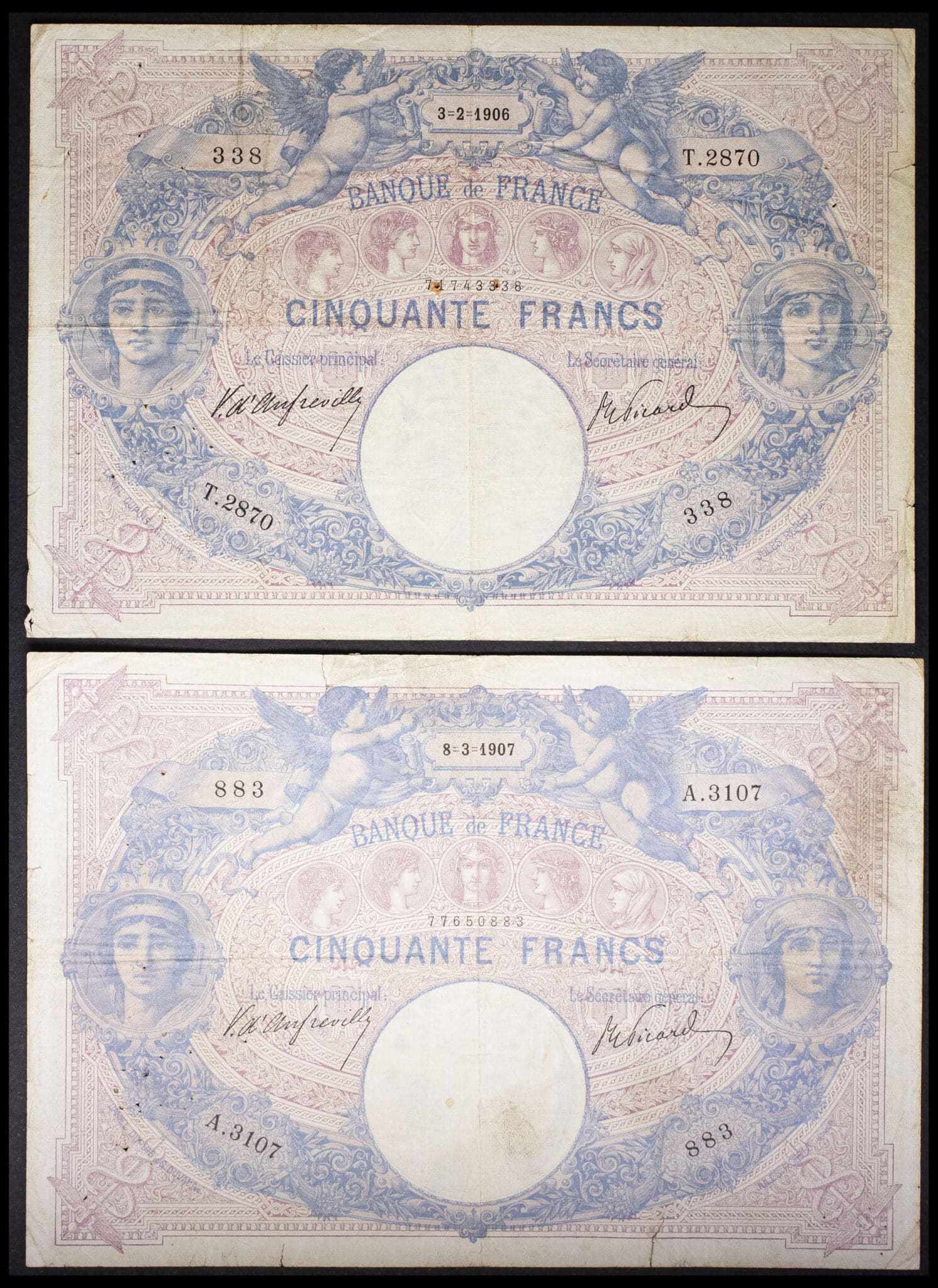 - Lot (2) - 50 francs type “bleu et rose” 3-2-1906 et 8-3-1907.