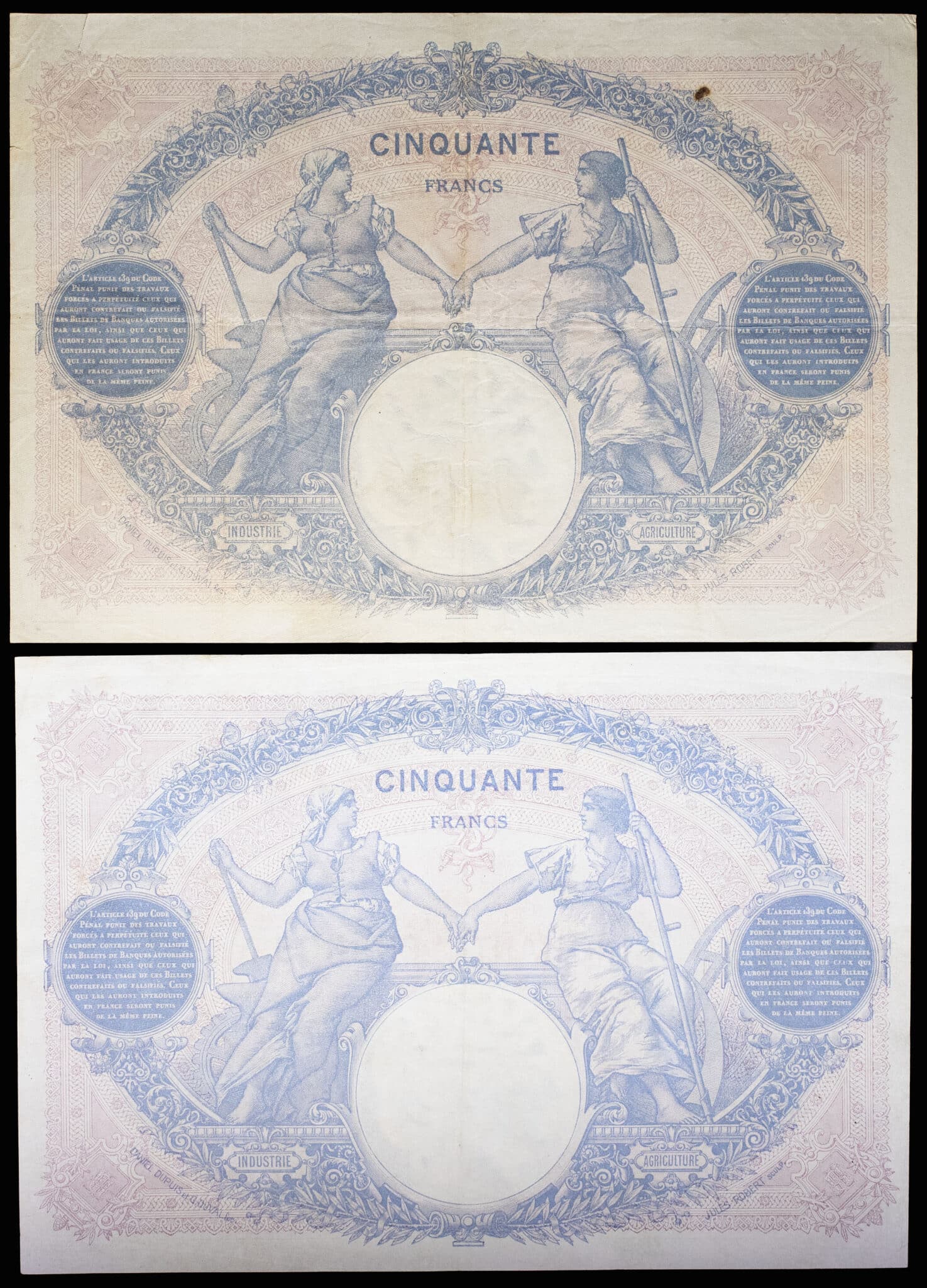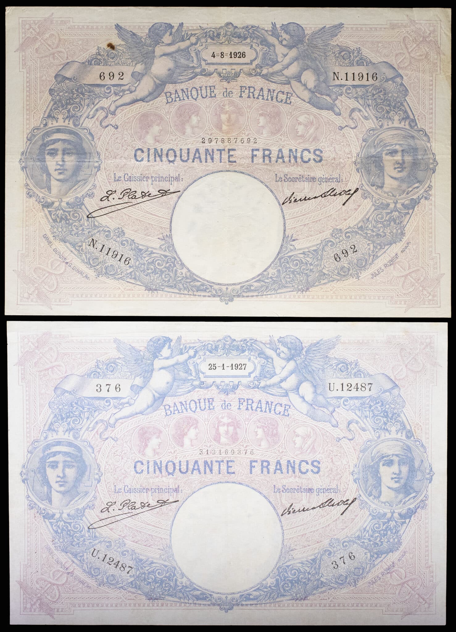 - Lot (2) - 50 francs type “bleu et rose” 4-8-1926 au 25-1-1927.