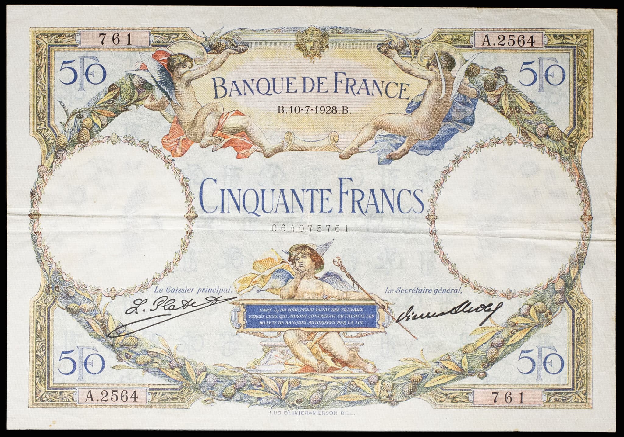 - 50 francs type “Luc-Olivier Merson” 10-7-1928.