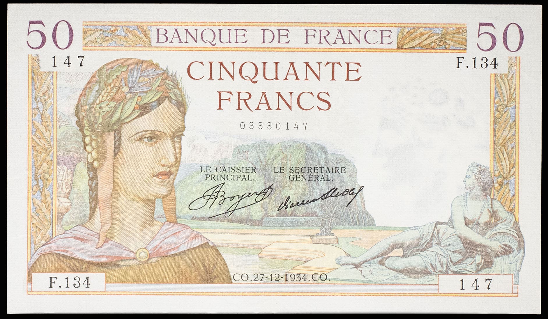 - 50 francs type “Cérès” 27-12-1934.
