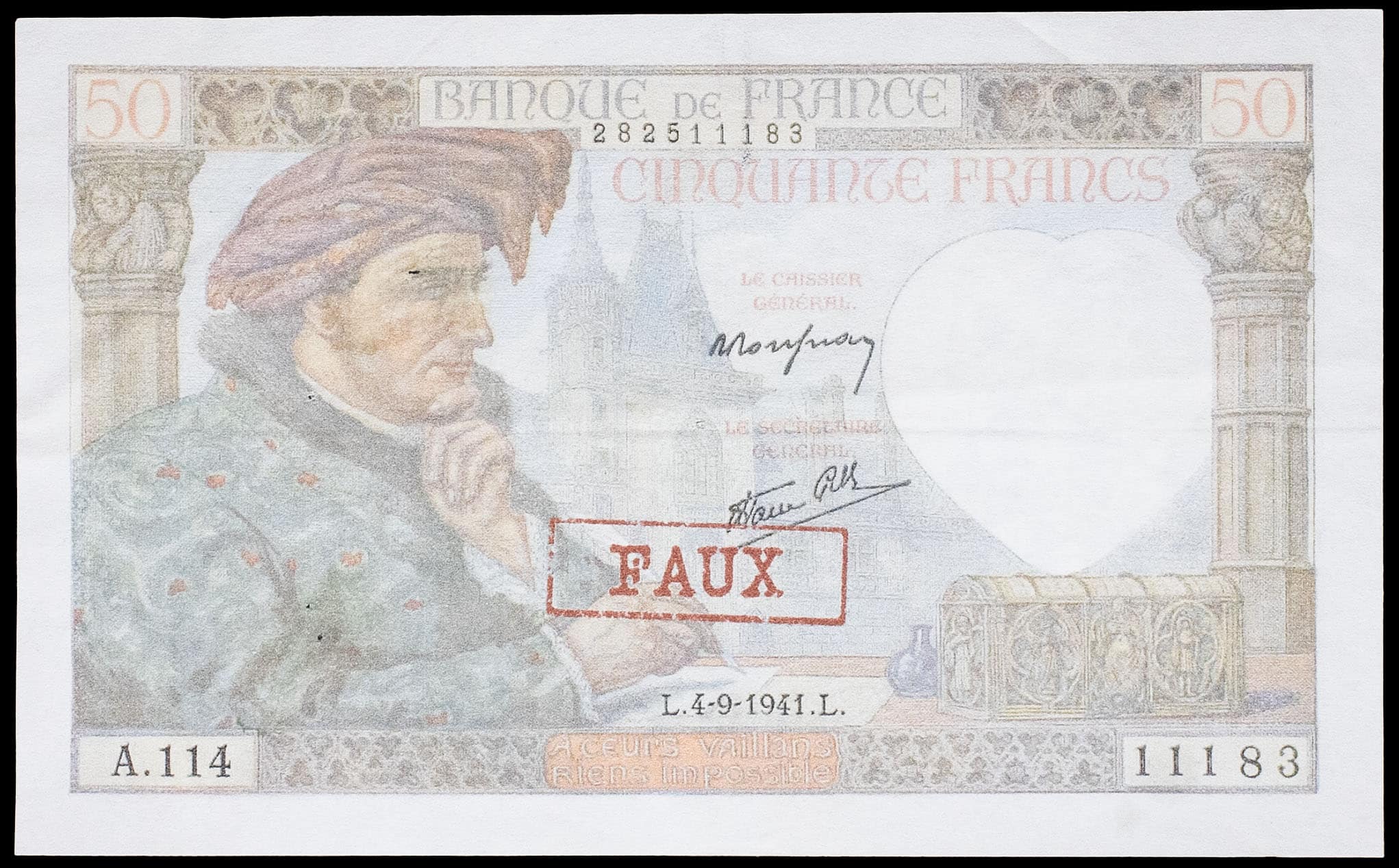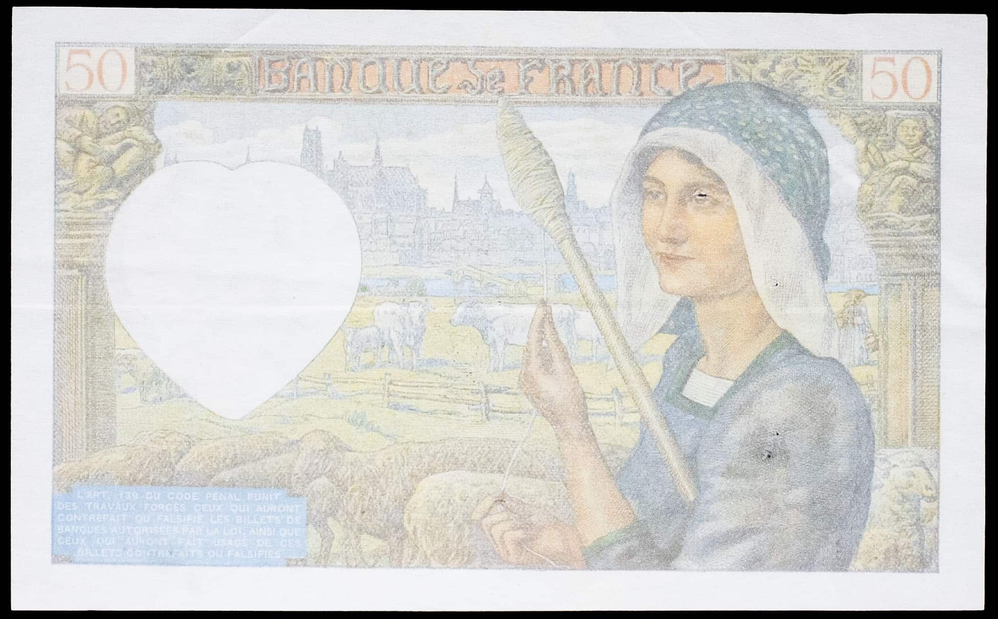 - 50 francs type “Jacques Coeur”, faux postérieur 4-9-1941.