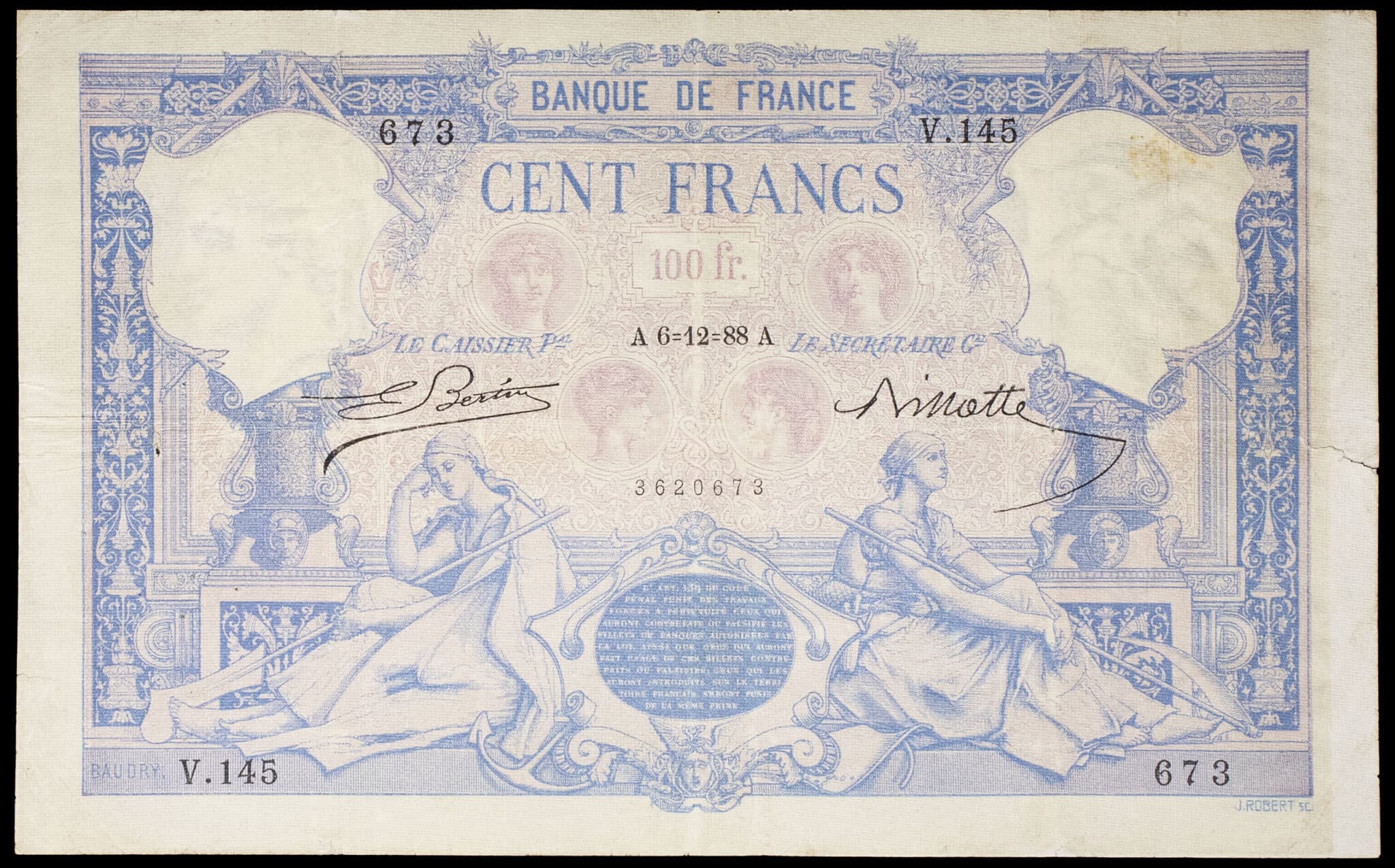 - 100 francs type “bleu et rose” 6-12-1888.
