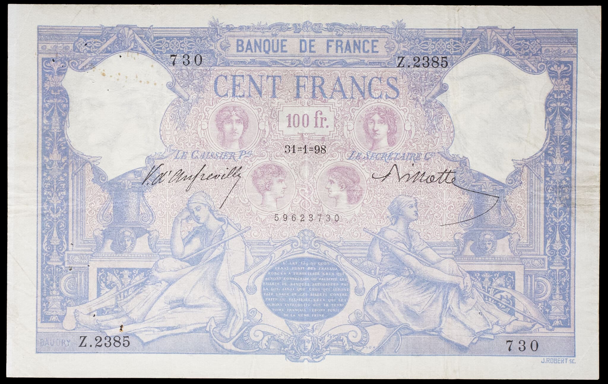 - 100 francs type “bleu et rose” 31-1-1898.