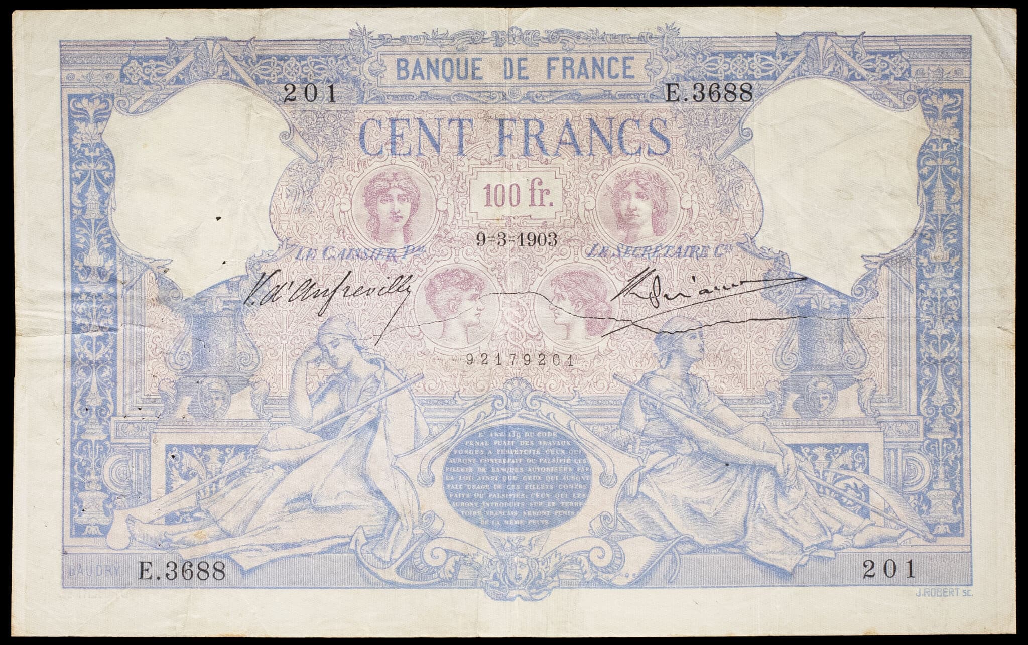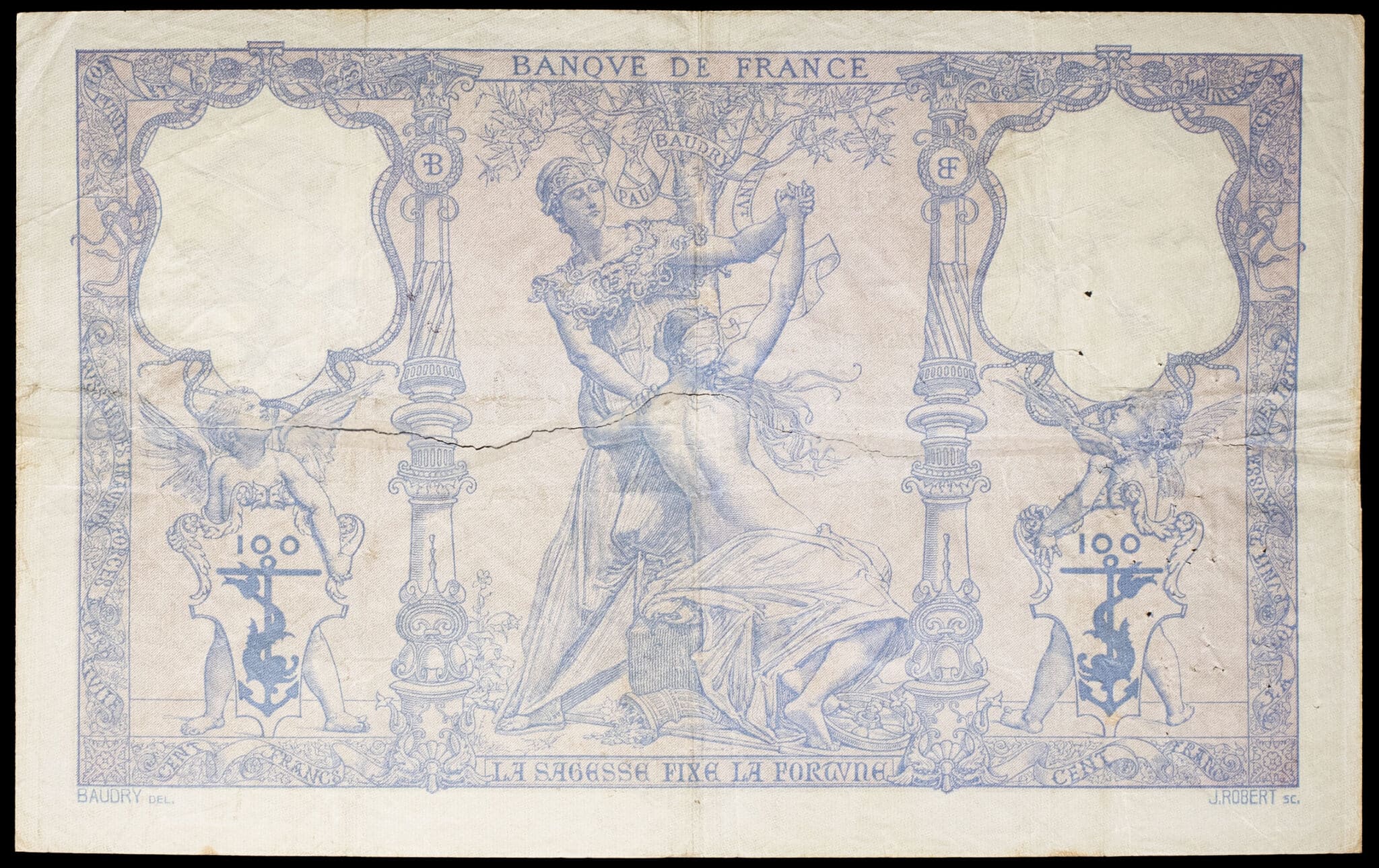 Épinglages et plis. Une grande déchirure avec restauration au centre du billet (12cm). TB.