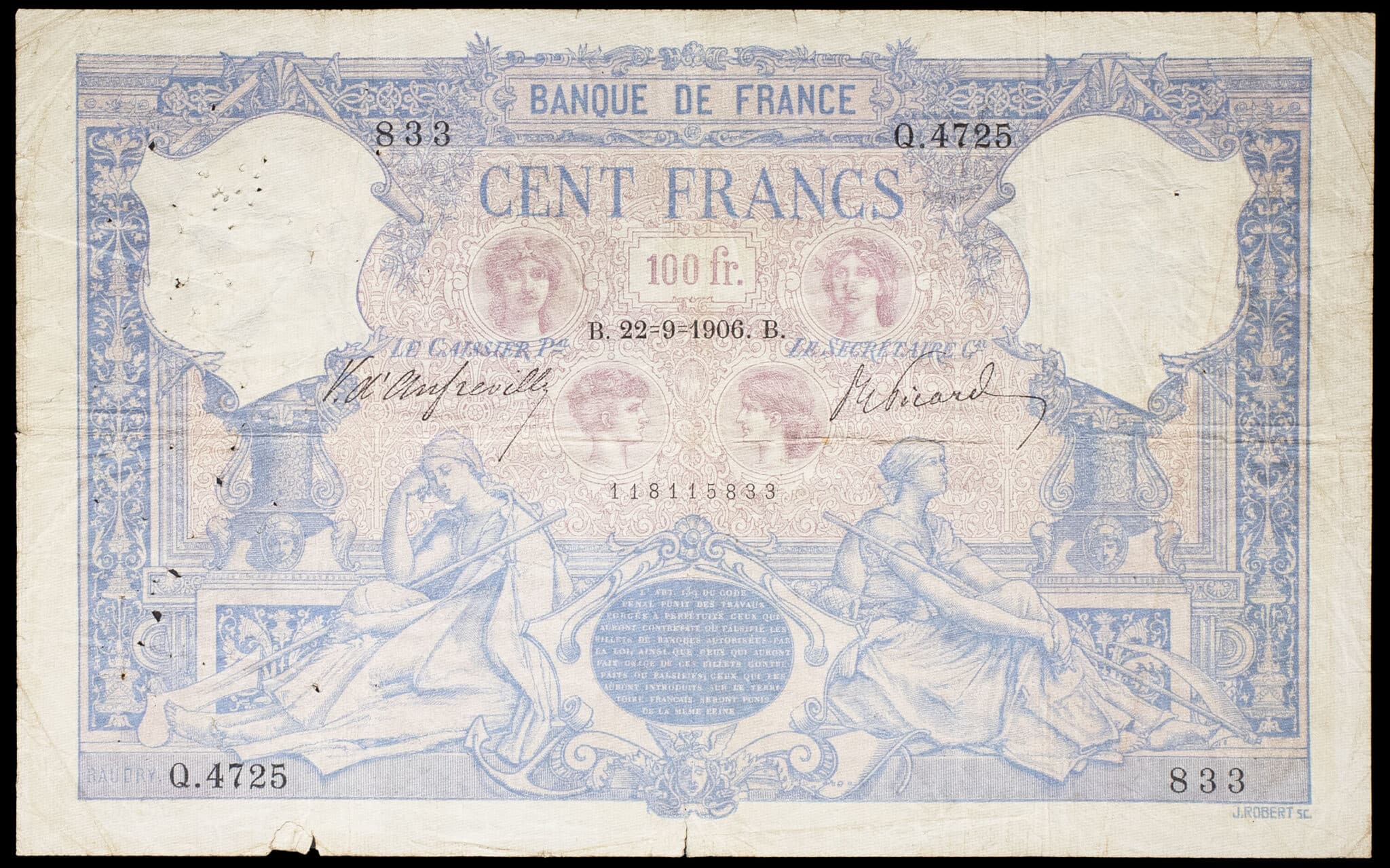 - 100 francs type “bleu et rose” 22-9-1906.