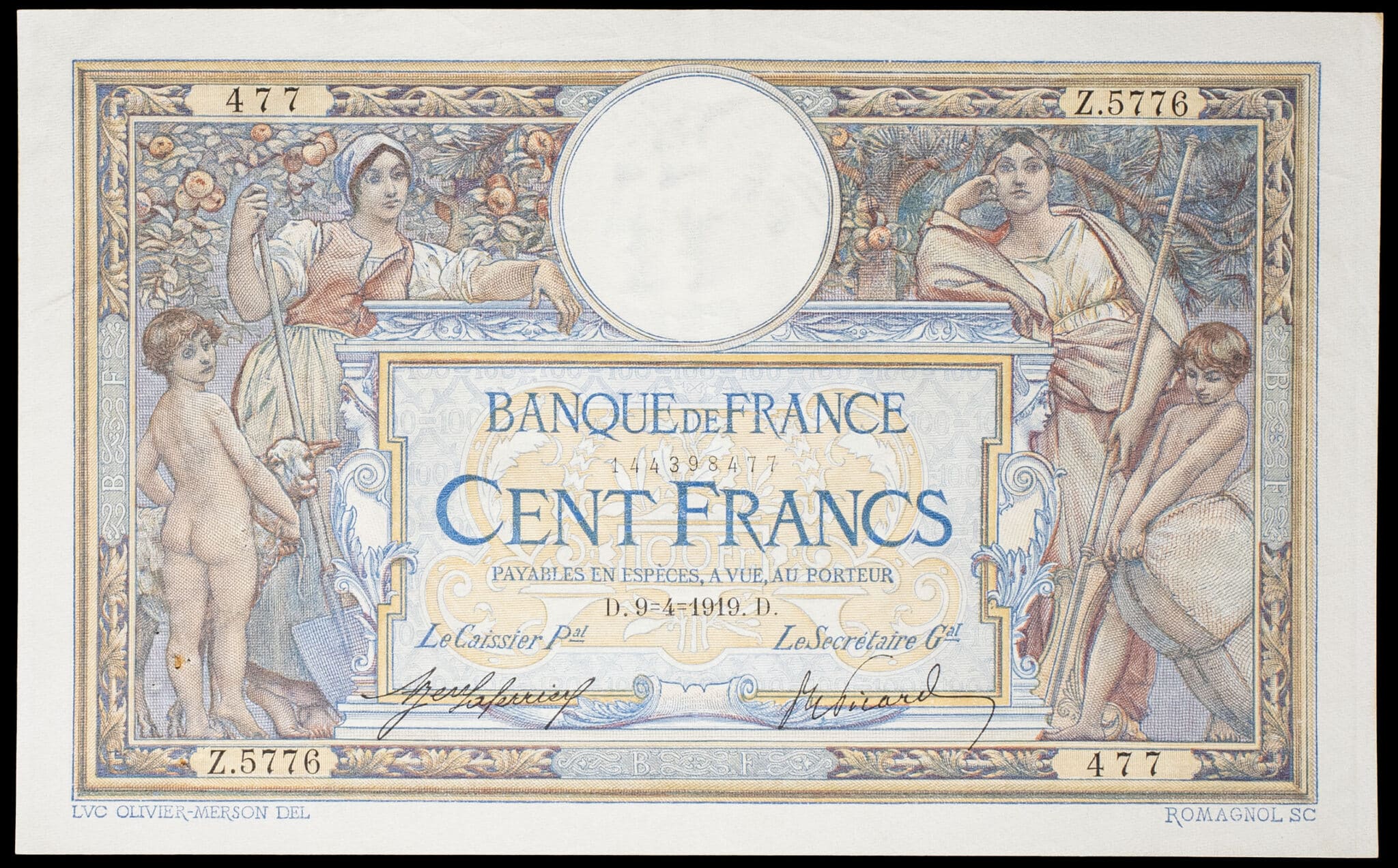 - 100 francs type “Luc Olivier Merson” modifié sans “LOM” 9-4-1919.