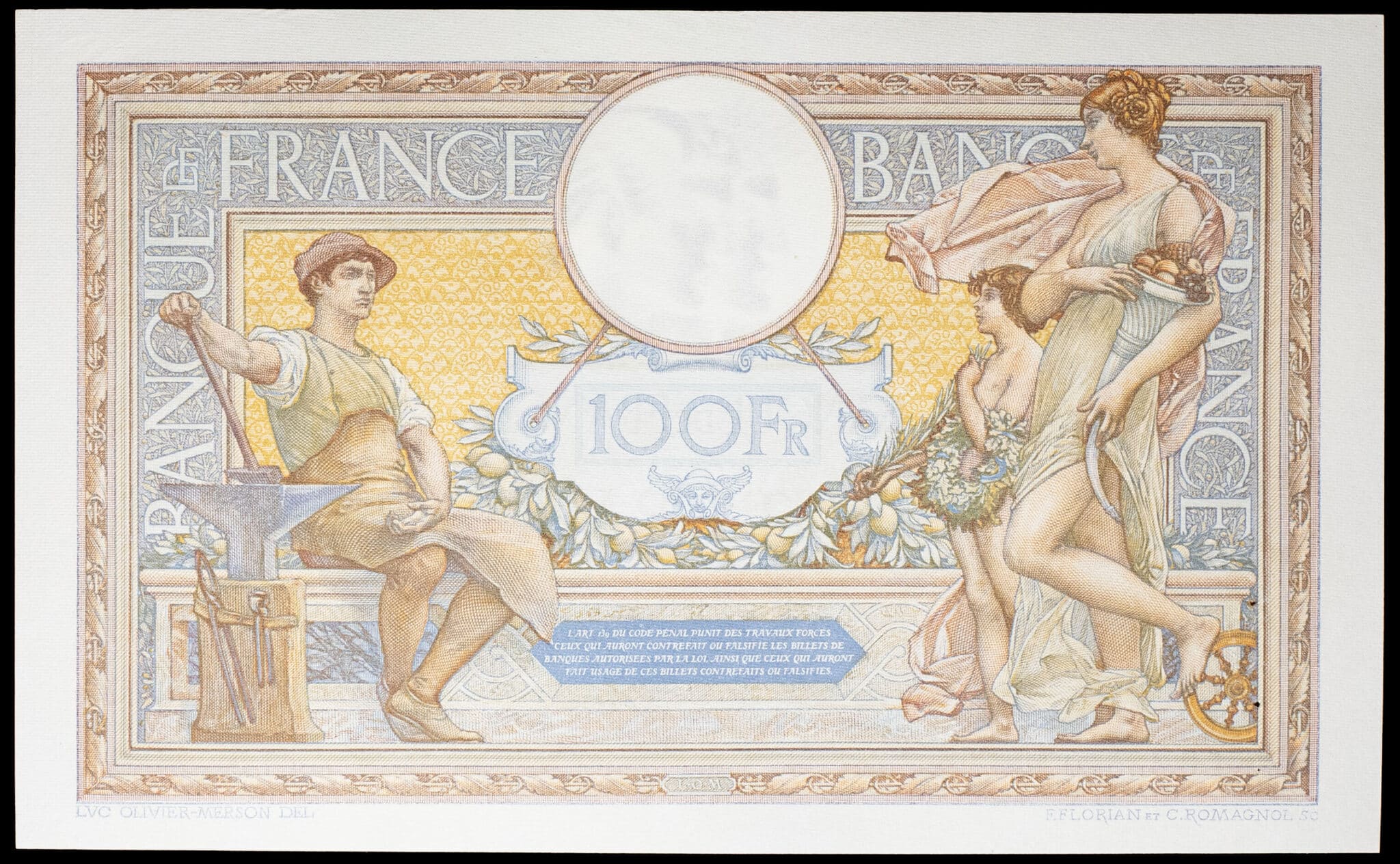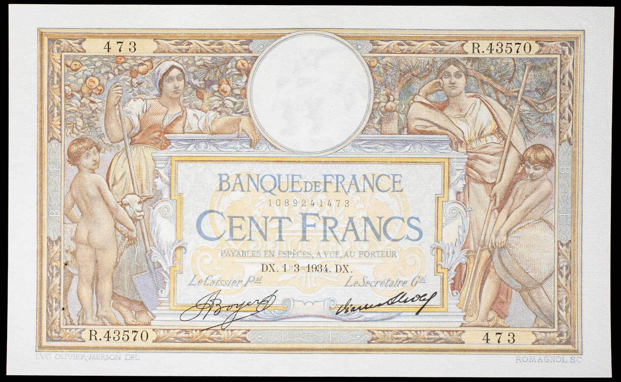- 100 francs type “Luc-Olivier Merson” modifié avec grands cartouches 1-3-1934.