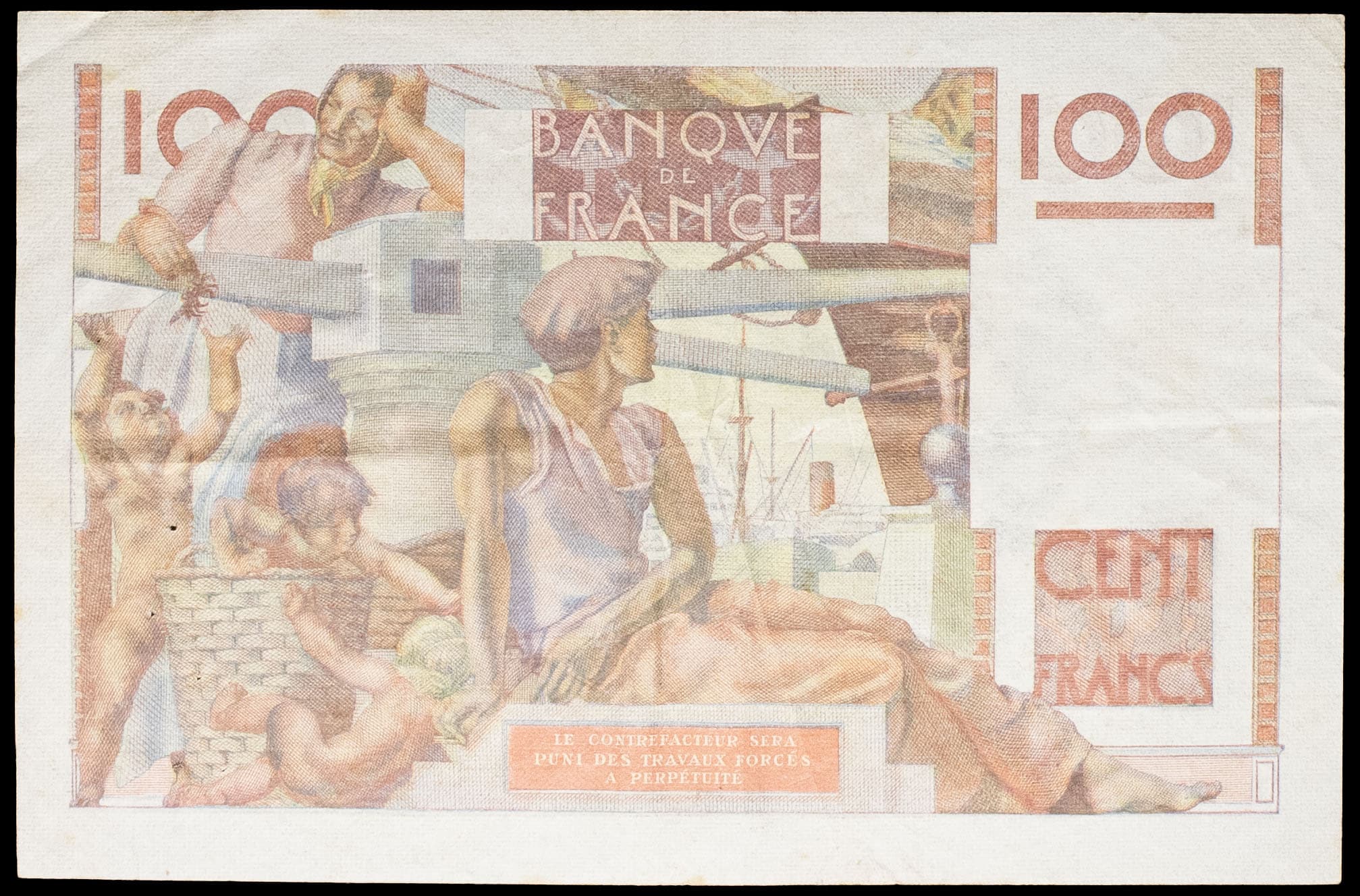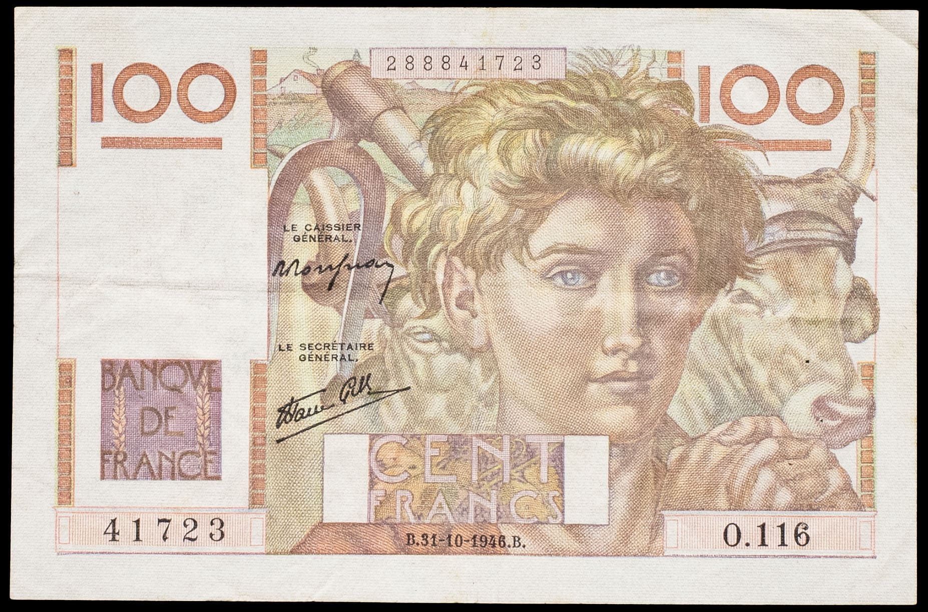 - 100 francs type “jeune paysan” FAUTÉ / ERROR avec décalage du filigrane 31-10-1946.