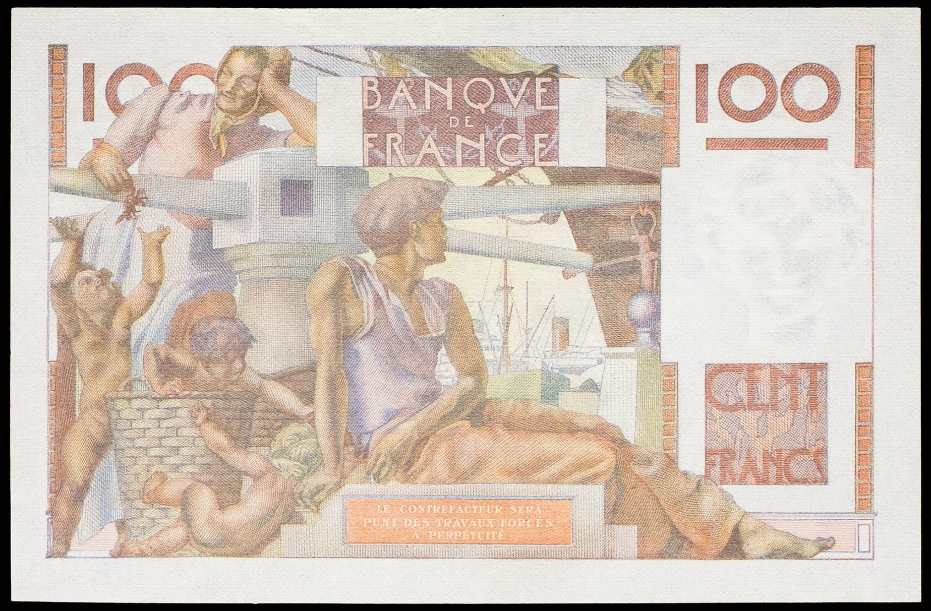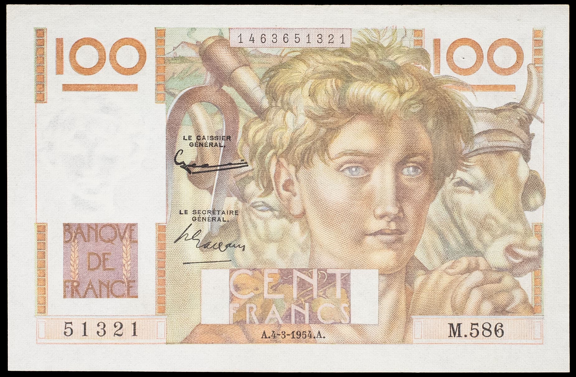 - 100 francs type “jeune paysan” avec filigrane inversé 4-3-1954.