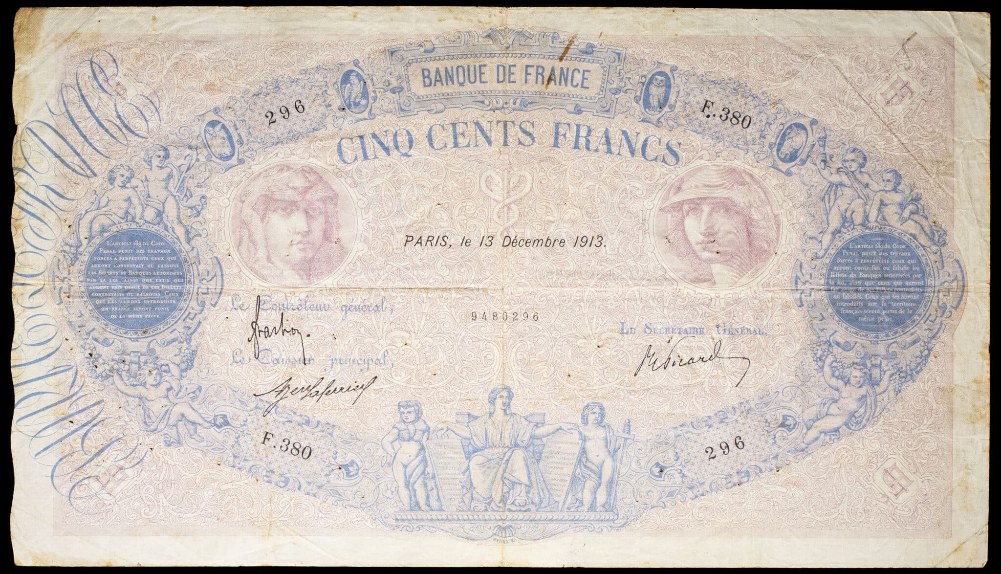 - 500 francs type “bleu et rose” 13 décembre 1913.