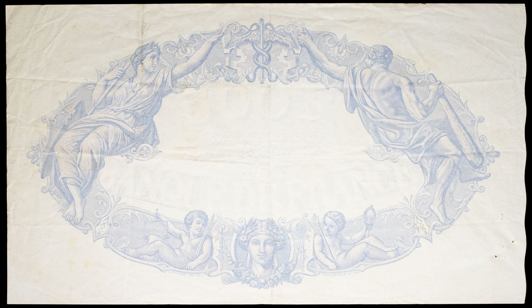 Deux épinglages (cinq trous), plis et rousseurs. TTB à TTB+.