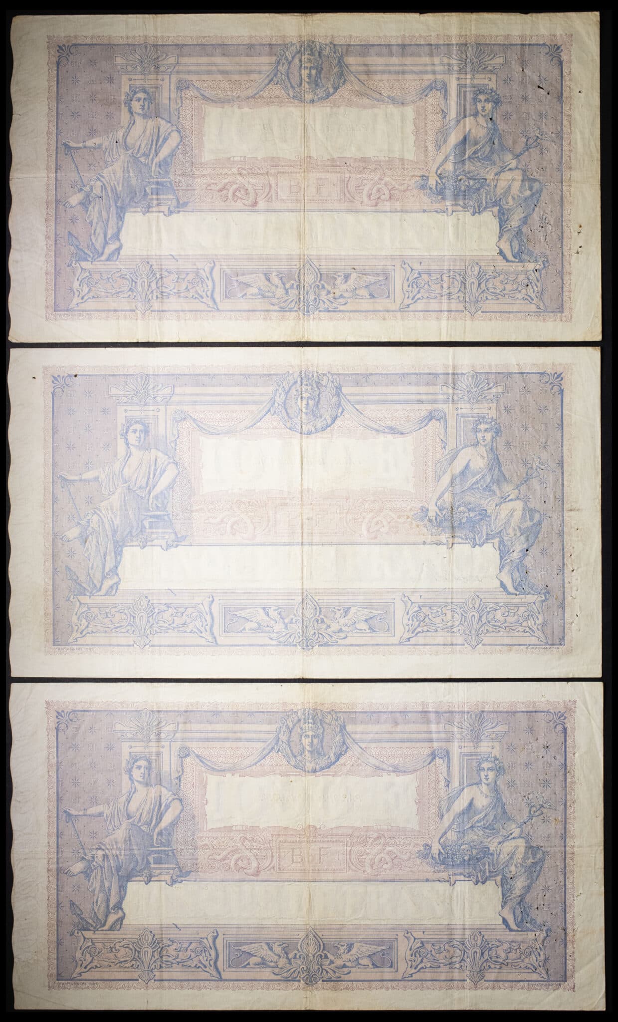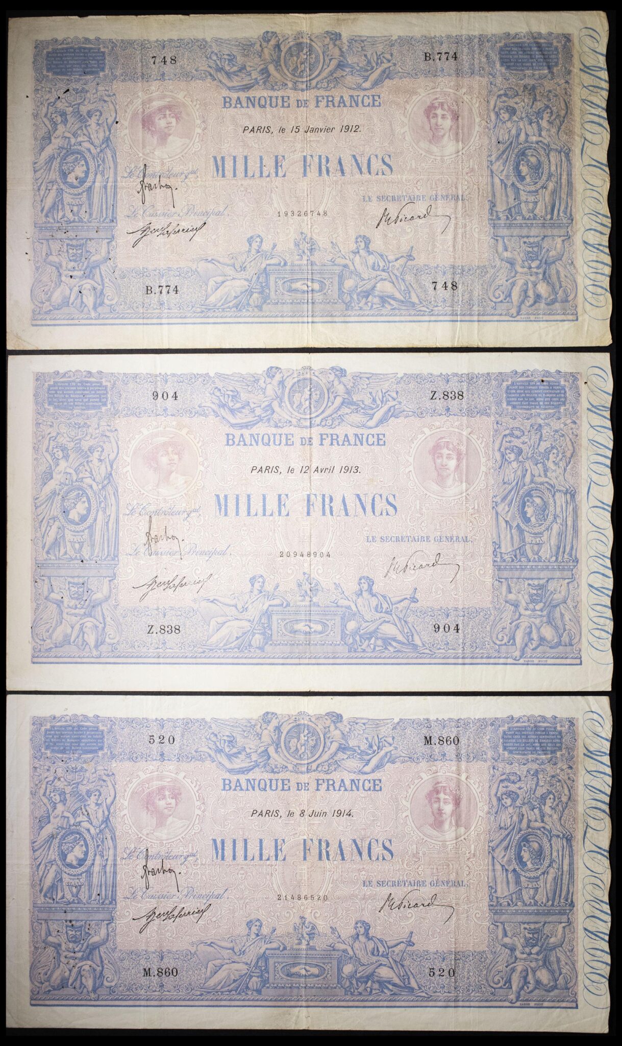 - Lot (3) - 1000 francs type “bleu et rose” 15 janvier 1912 au 8 juin 1914.