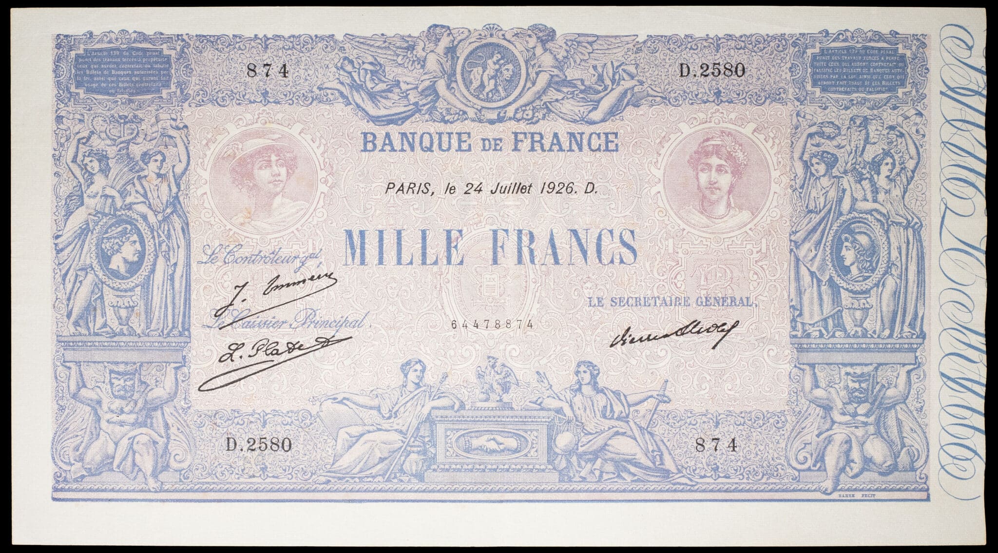 - 1000 francs type “bleu et rose” 24 juillet 1926.