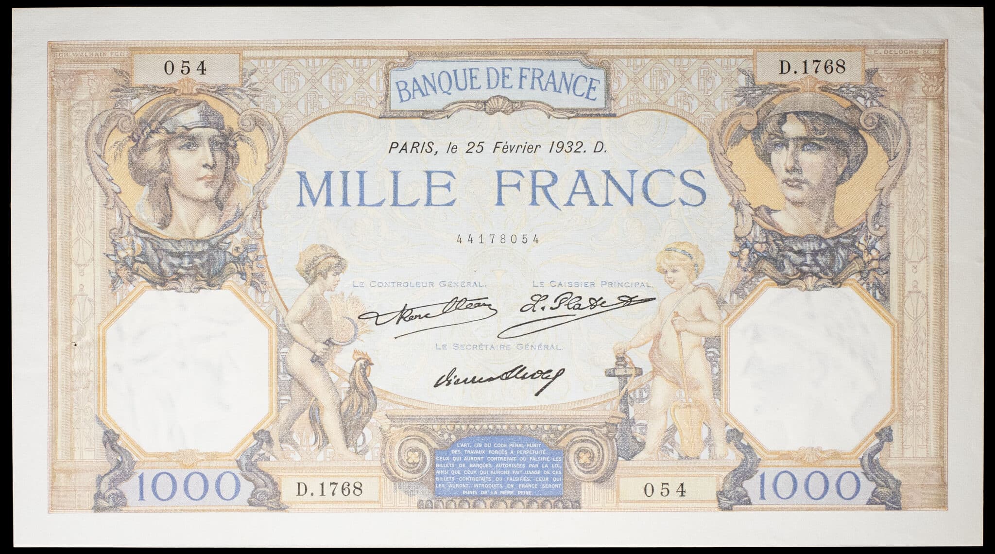 - 1000 francs type “Cérès et Mercure” 25 février 1932.