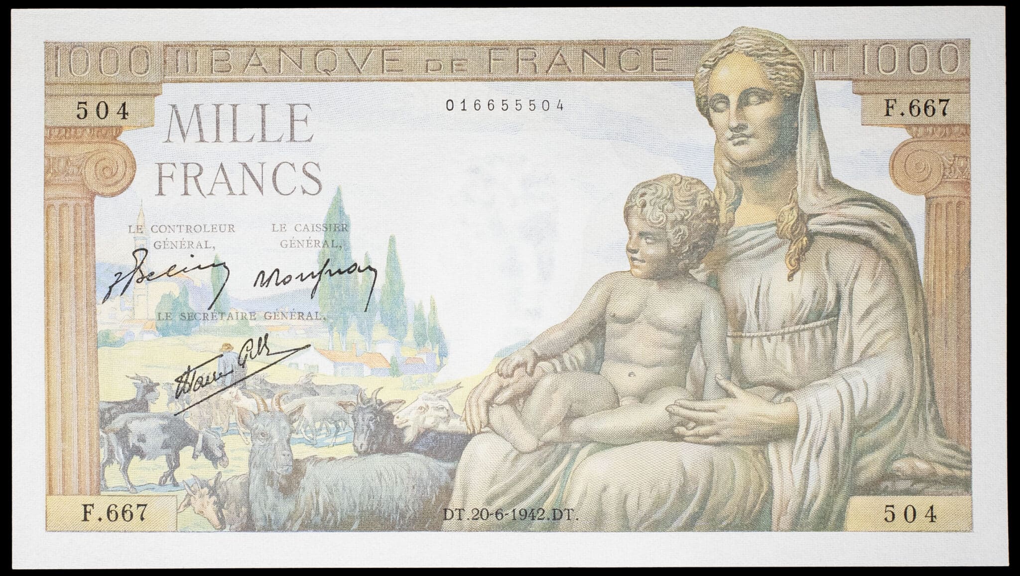 - 1000 francs type “Déesse Déméter” 20-6-1942.