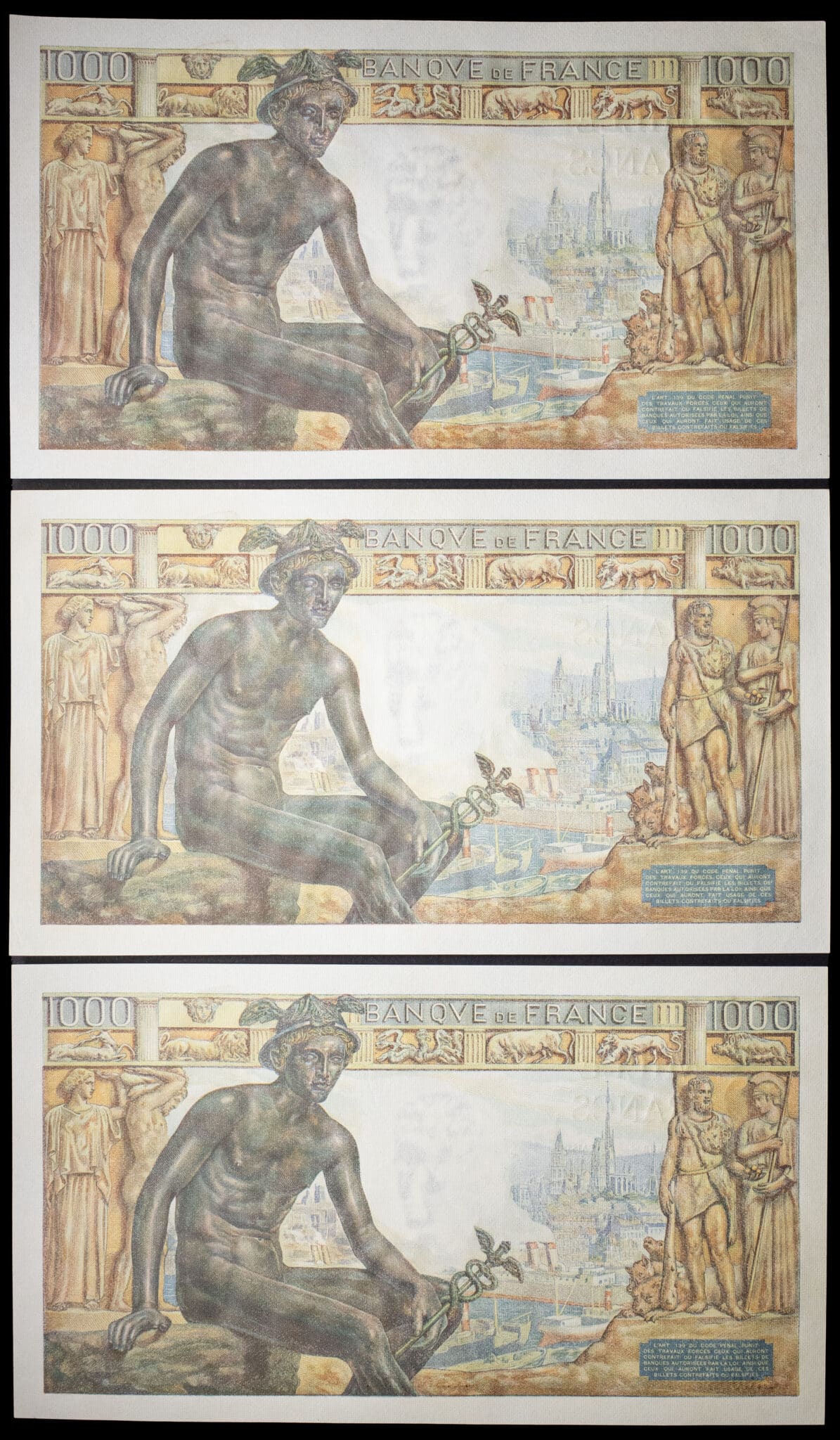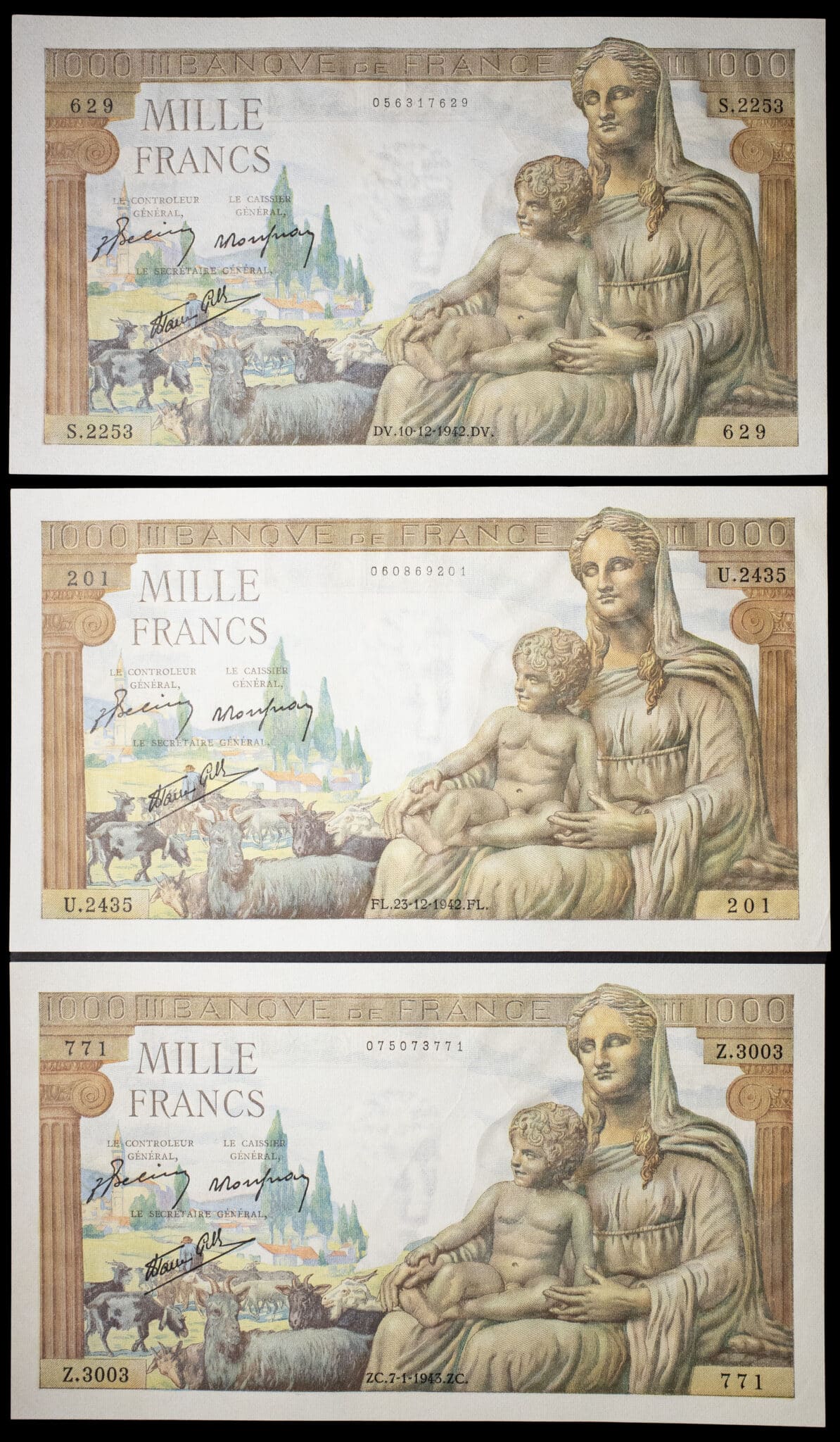 - Lot (3) - 1000 francs type “Déesse Déméter” 10-12-1942 au 7-1-1943.