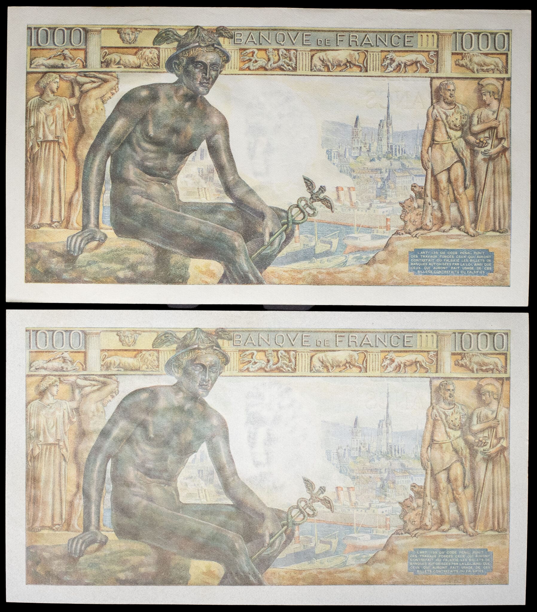 - Lot (2) - 1000 francs type “Déesse Déméter” 28-1-1943 et 11-2-1943.