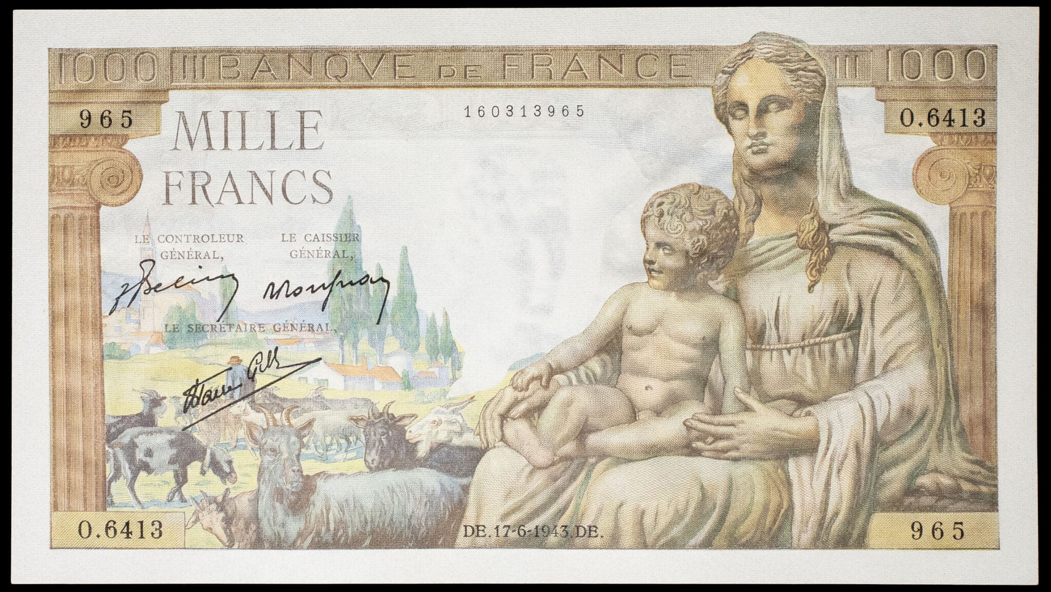 - 1000 francs type “Déesse Déméter” 17-6-1943.