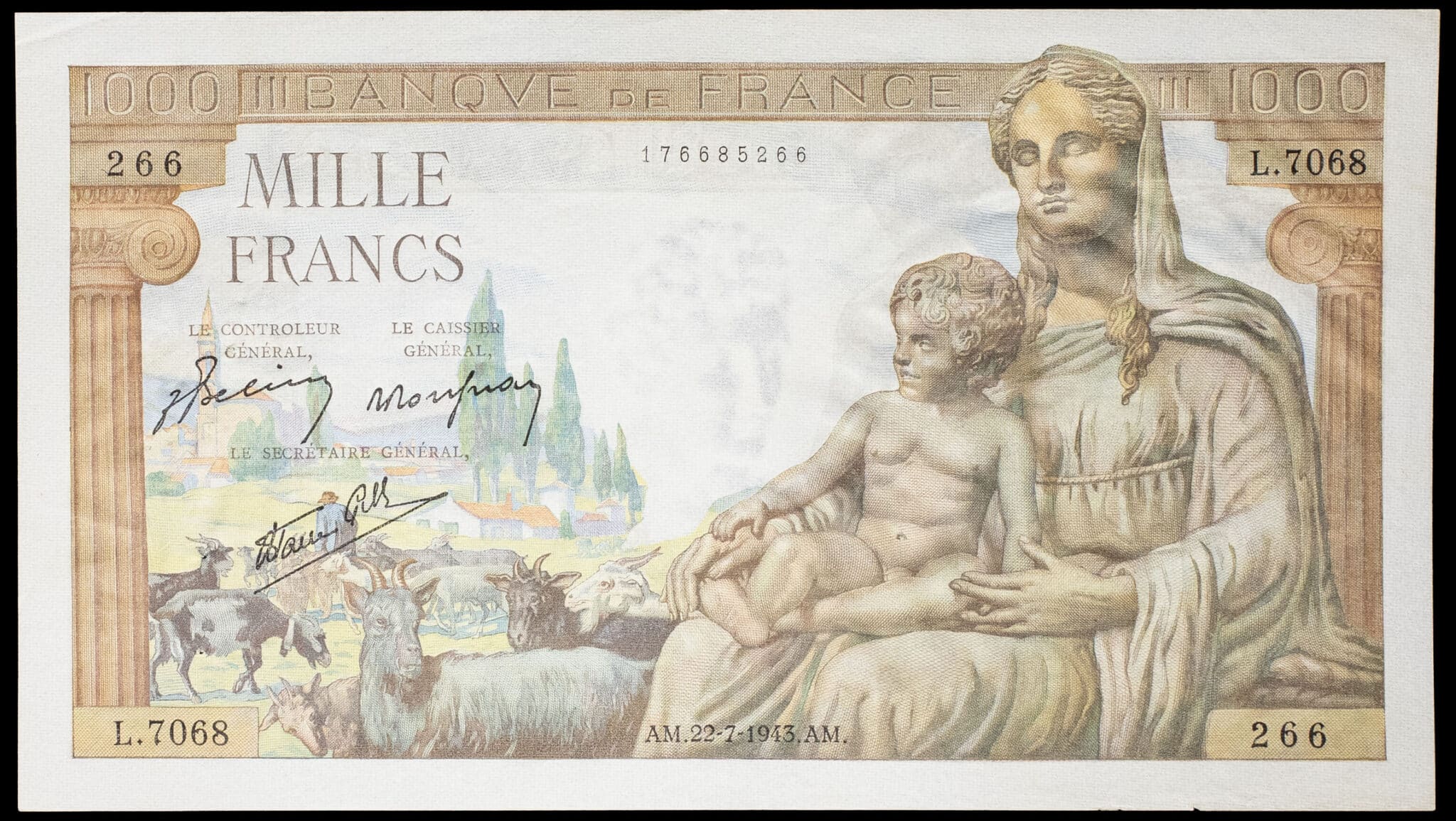 - 1000 francs type “Déesse Déméter” 22-7-1943.