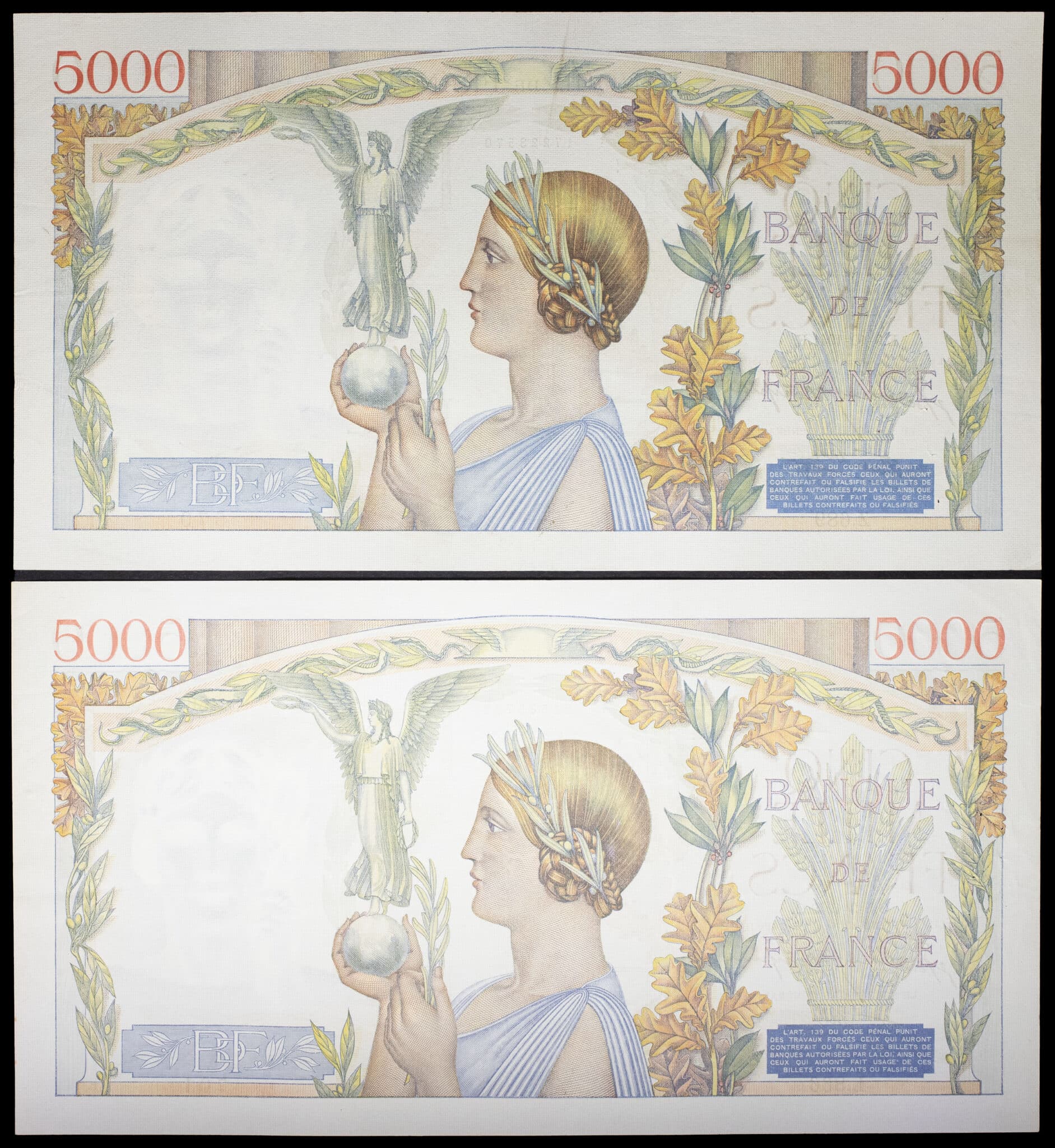 - Lot (2) - 5000 francs type “Victoire” impression à plat 9-10-1941 et 5-3-1942.