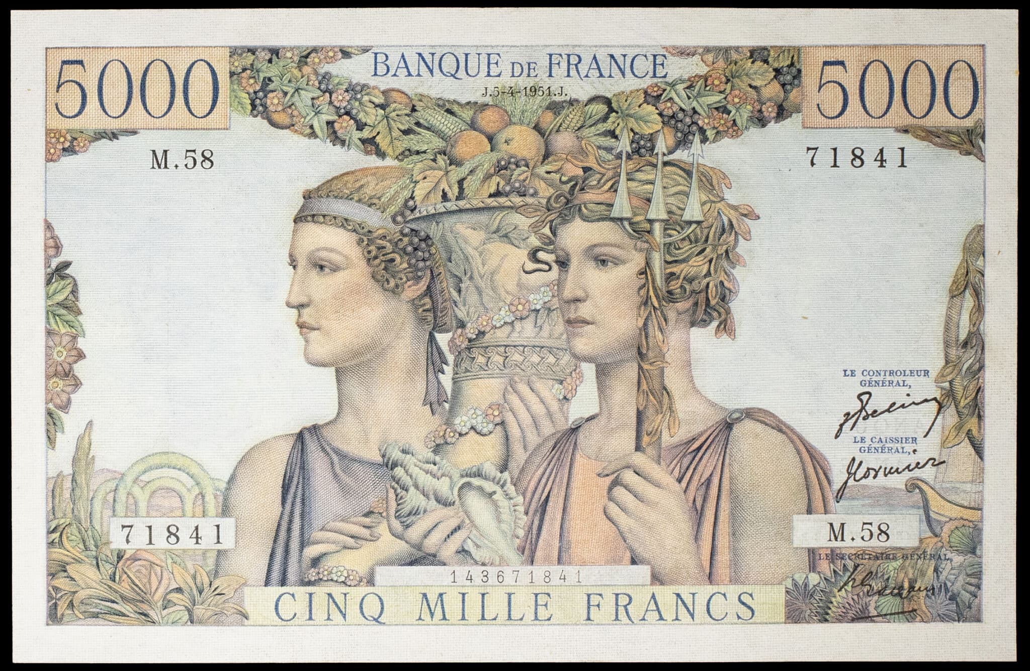 - 5000 francs type “Terre et Mer” 5-4-1951.