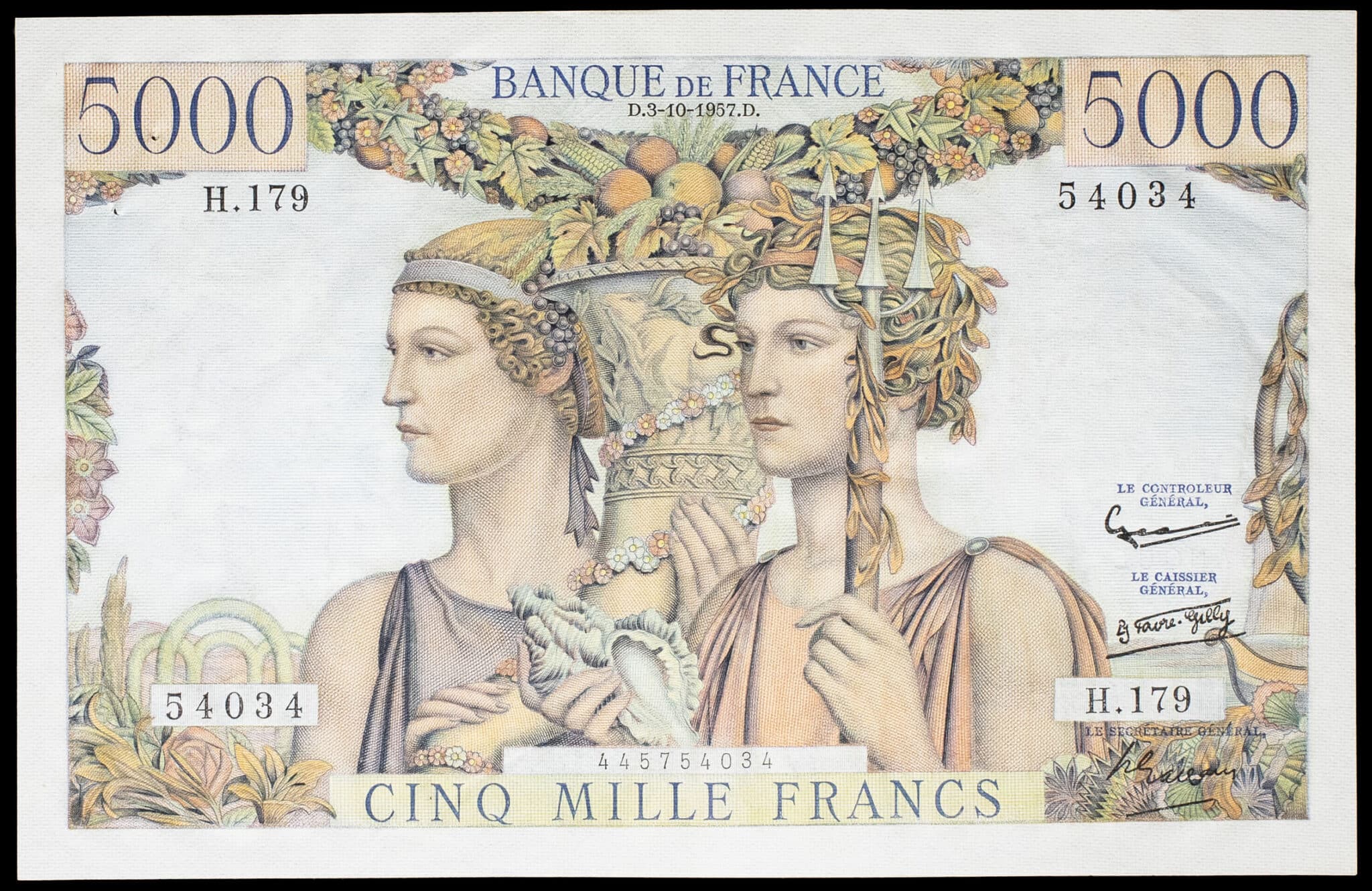 - 5000 francs type “Terre et Mer” 3-10-1957.