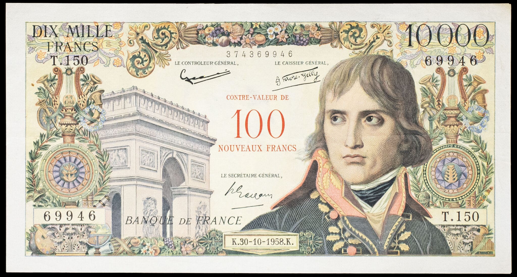 - 100 nouveaux francs surchargé sur 10 000 francs type “Napoléon Bonaparte” 30-10-1958.