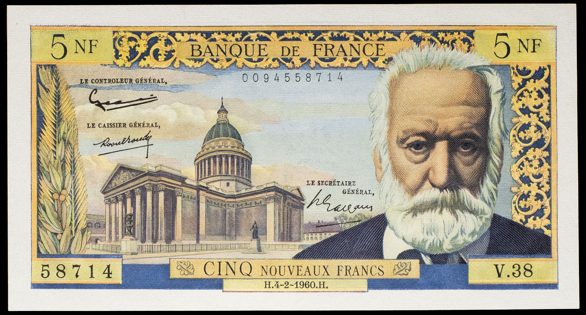 - 5 nouveaux francs type “Victor Hugo” 4-2-1960.