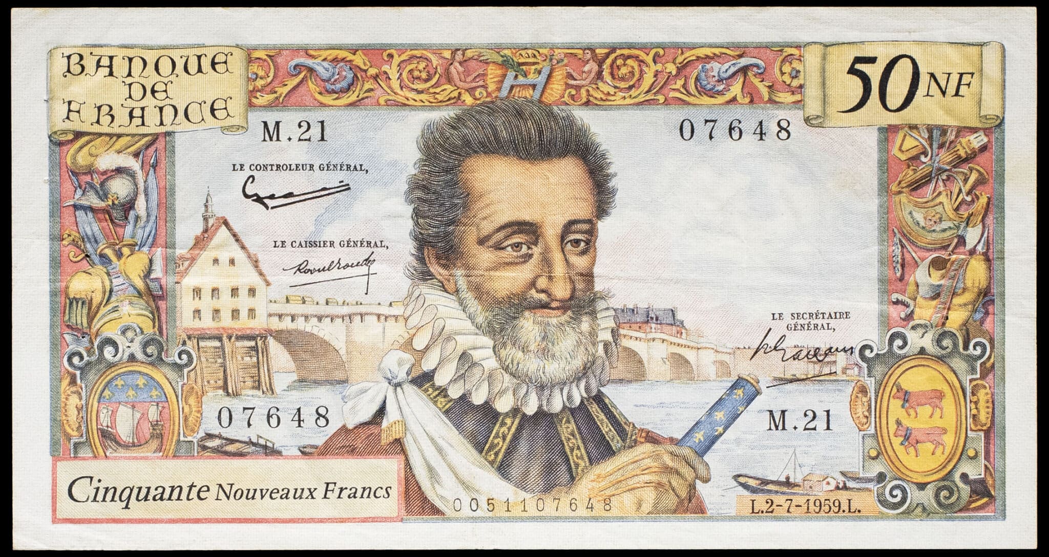 - 50 nouveaux francs type “Henri IV” 2-7-1959.
